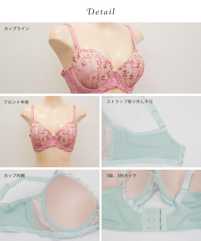 | 【カップタイプ】3/4カップ・モールドカップ(丸みを形成した厚みのあるカップです)、【ホックの数】3段3列、【パット付属】なし、【パットポケット】なし、【ストラップ取外し】不可、【ワイヤー】あり、※タンブル乾燥禁止 |