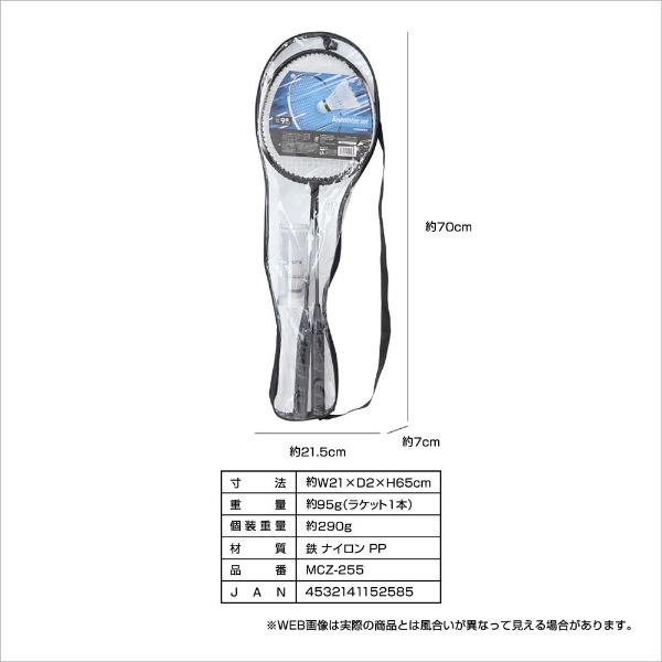 アウトドアやレジャーなどへ、気軽に持って行って遊べるバドミントンセット! ■寸法:約W21×D2×H65cm ■重量:約95g(ラケット1本) ■個装重量:約290g ■材質:鉄 ナイロン PP ■品番:MCZ-255 ※記載は商品仕様の一部です。仕様説明不足等の理由での返品はできません。特に適合等は必ずご確認ください。