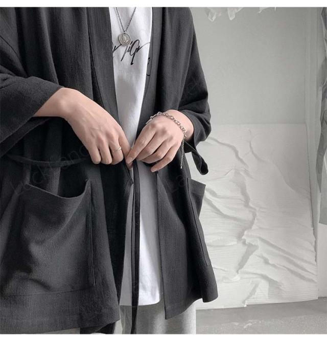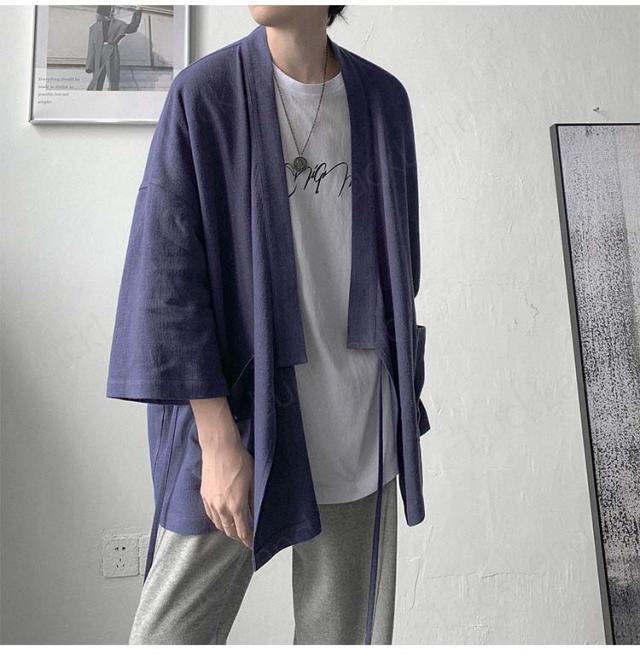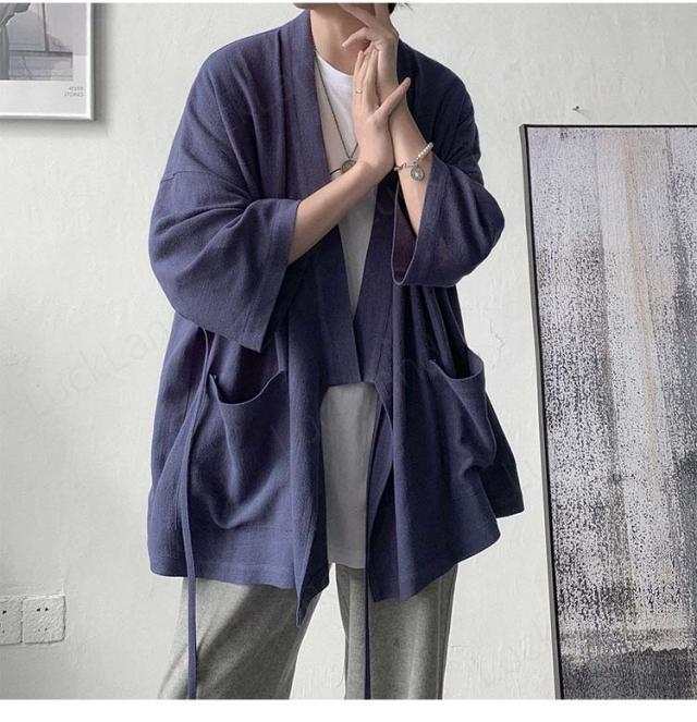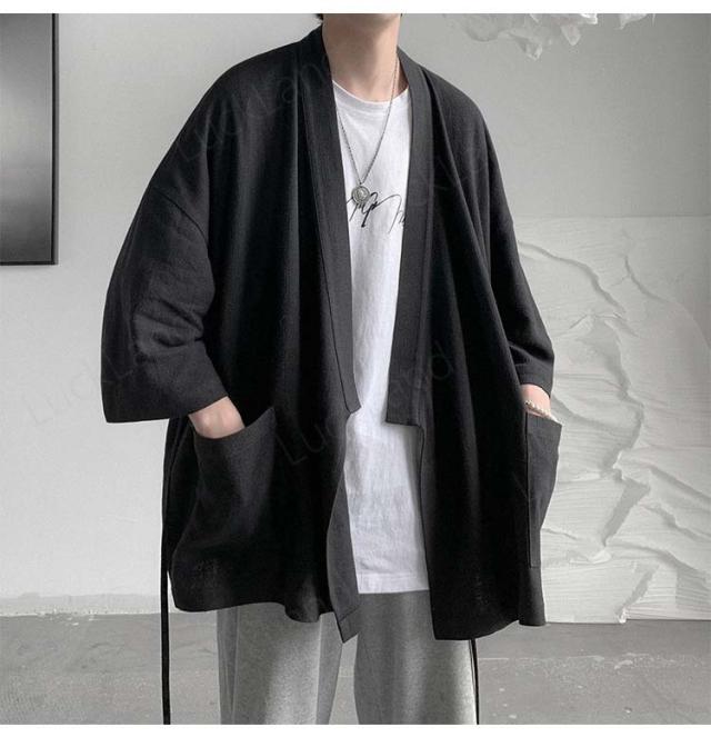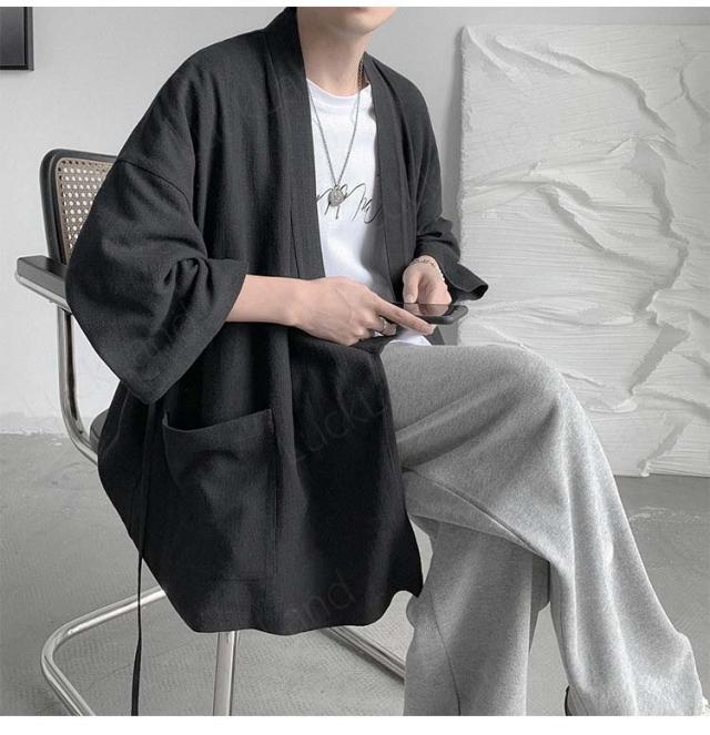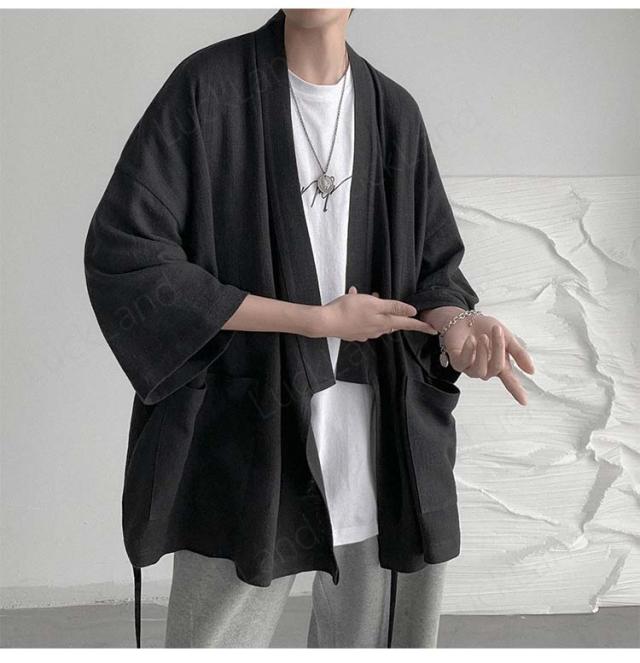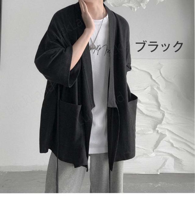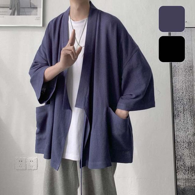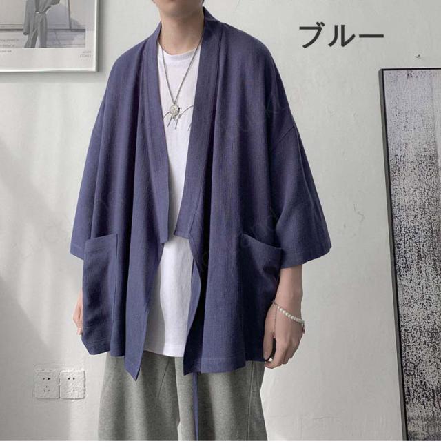 カーディガン メンズ 麻 夏祭り 和柄 羽織り 開襟 シャツ 作務衣 浴衣 はっぴ 法被 祭り袢纏 夏用 ゆったり おしゃれ 甚平 男性用 羽織物 和服 和柄 七分袖 花火大会 無地 2color