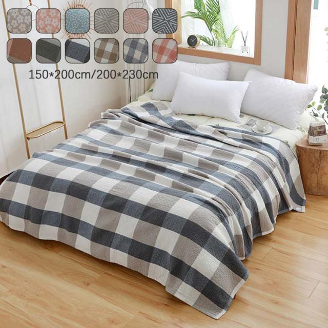 寝具 冷房対策 綿100% ブランケット 大判 夏用 ひざ掛け チェック柄 ベッドスロー シングル ダブル 子供 柔らかい 感触良い 通気性 軽い エアコン毛布 幼稚園 保育園