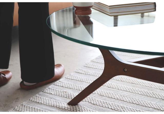 人気のウォールナットを使用した、高級感あふれるガラステーブル。