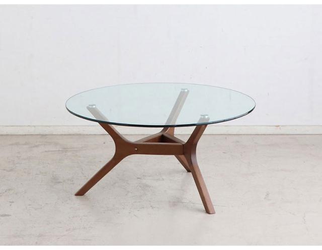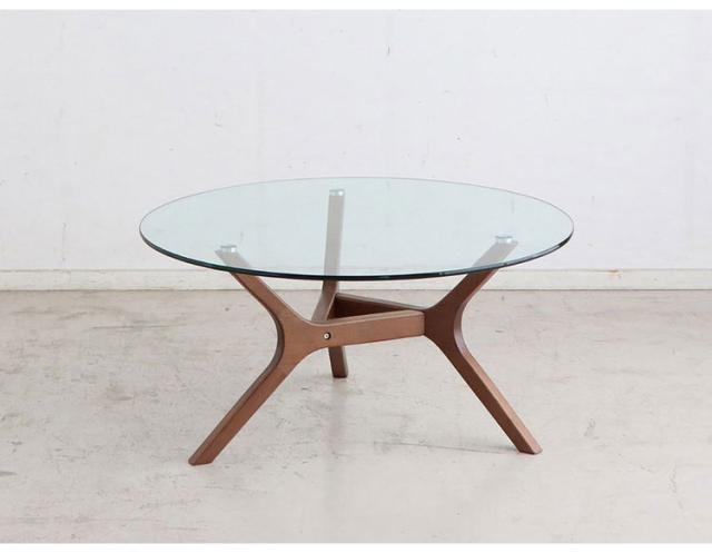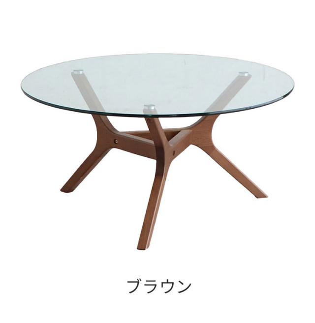 ガラステーブル ローテーブル リビングテーブル センターテーブル 幅80 高さ40 天然木フレーム ラウンド 大きめ 丸 円形 強化ガラス ウォルナット ガラス 木製 おしゃれ 北欧 ベージュ ブラウン(代引不可)【送料無料】