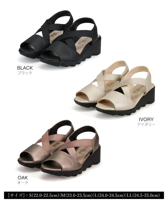 ファーストコンタクト サンダル レディース 疲れない 日本製 ウェッジソール ゴム クロスバンド 美脚 軽量 軽い 歩きやすい 履きやすい 疲れにくい ヒール 通勤 オフィス 旅行 春 夏 上品 大人 カジュアル おしゃれ 黒 ブラック アイボリー ゴールド FIRST CONTACT 92017