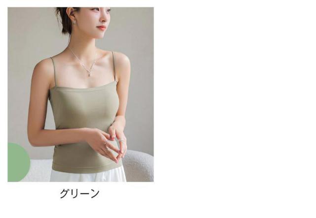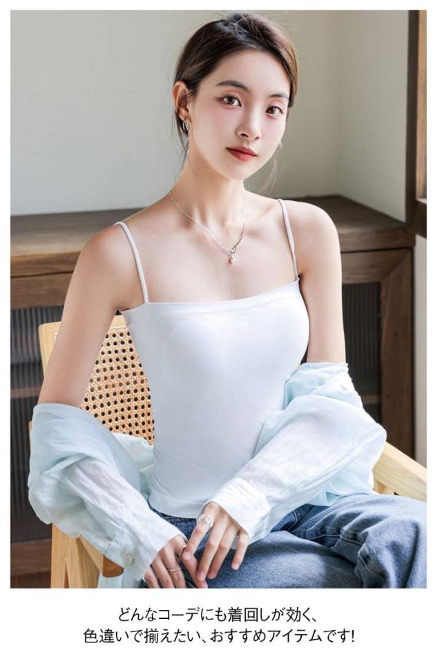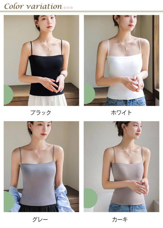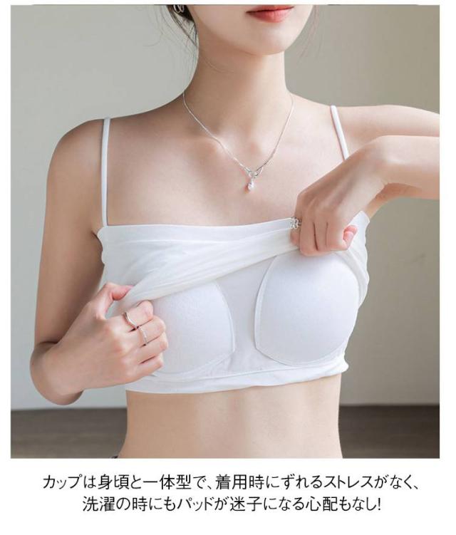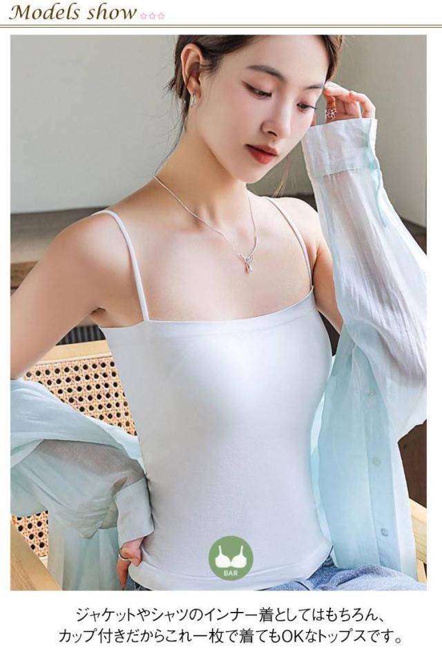 キャミソール カップ付き タンクトップ レディース 夏 ブラ一体型 インナー トップス チューブトップ ブラトップ ノンワイヤー ノースリーブ 無地 肩紐 薄手 おしゃれ ストレッチ レイヤード 重ね着 送料無料
