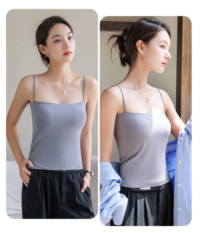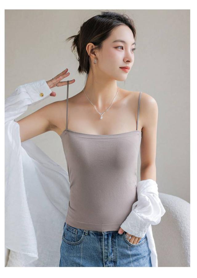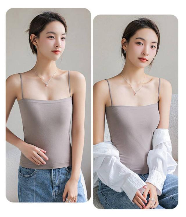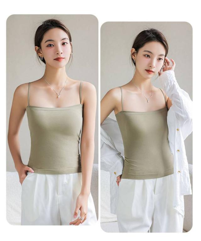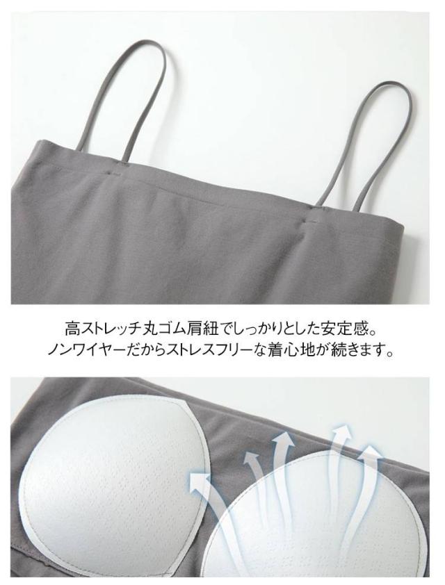 | 【ブラ一体型&カップ付きキャミソール】 【トップス、インナーにもなる】 通気性に優れており、蒸し暑い季節でも快適に着られる素材を使用。 カップは身頃と一体型で、着用時にずれるストレスがなく、洗濯の時にもパッドが迷子になる心配もなし! 高ストレッチ丸ゴム肩紐でしっかりとした安定感。ノンワイヤーだからストレスフリーな着心地が続きます。 ジャケットやシャツのインナー着としてはもちろん、カップ付きだからこれ一枚で着てもOKなトップスです。 どんなコーデにも着回しが効く、色違いで揃えたい、おすすめアイテムです! | |