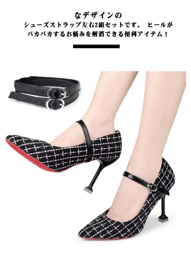 シューズストラップ ヒールストラップ 2組(4枚)セット レディース 女性 パンプスベルト シューズバンド バンド シューズベルト パンプスストラップ 靴脱げ防止 固定 サイズ調節可 シンプル ヒール ストラップ 浮き足防止 かかと 脱げ防止 送料無料