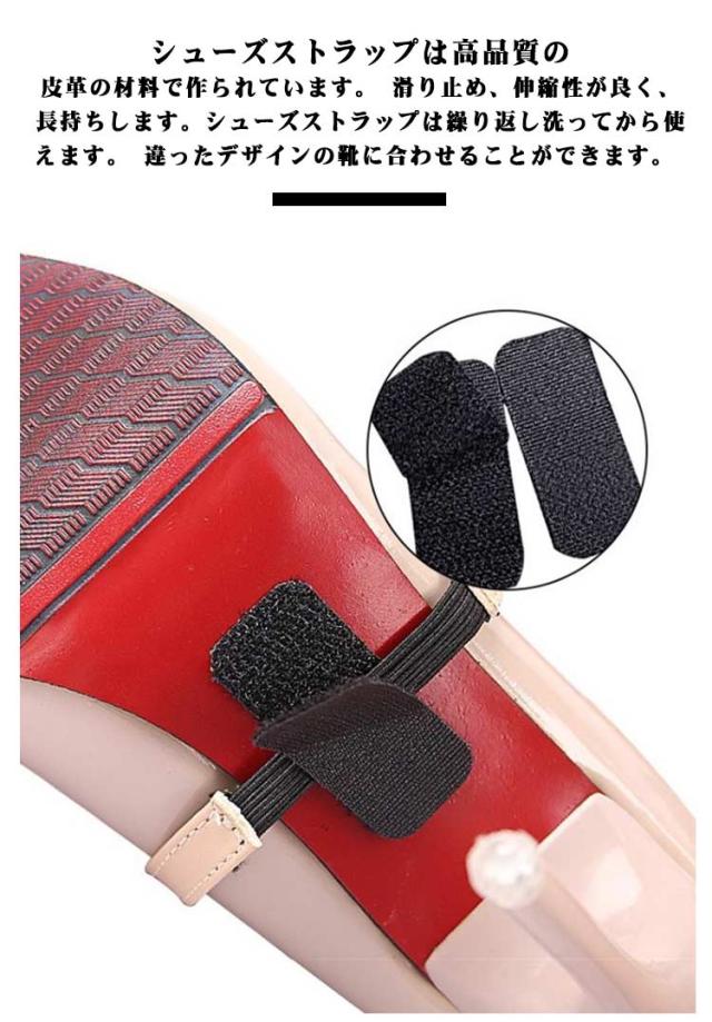 | なデザインのシューズストラップ左右2組セットです。 ヒールがパカパカするお悩みを解消できる便利アイテム! ? 靴底と足首を固定するのでパンプス ヒールがしっかりとフィット! シューズストラップをご使用頂く事で、パンプスが足に固定されるので、 脱げる心配もなく歩きやすいです。 ? ヒール部分にひっかけて足首を固定するので、足の甲で留めるゴムバンドタイプに比べて安定します。 歩くと脱げてしまいずっと履けなかったパンプスが大活躍! ? シューズストラップは、ベルト部分は数穴があり調整可能です。 ご自身の足や靴によってサイズを調整し、靴の脱落防止に役立ちます。 ? シューズストラップは高品質の皮革の材料で作られています。 滑り止め、伸縮性が良く、長持ちします。シューズストラップは繰り返し洗ってから使えます。 違ったデザインの靴に合わせることができます。 ? 靴は、靴、ヒール、サンダル、スリッパなどの脱落しやすいタイプに適しています。固定靴は、緩みにくいです | |