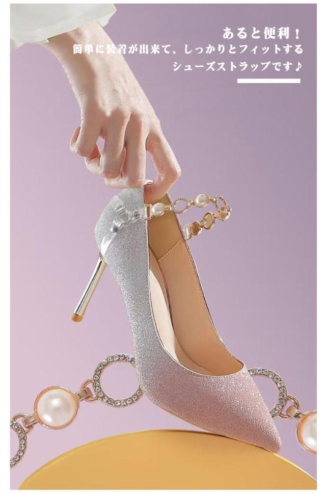 | パンプスやヒールのパカパカ・脱げ防止に役立つシューズストラップ。 おしゃれのアクセントにもなりますね! あると便利!簡単に装着が出来て、しっかりとフィットするシューズストラップです♪ 引っ掛けるだけでアンクルストラップ付きのシューズに大変身! パンプスはもちろん、ヒールのあるサンダルやミュールにもお使いいただけます! | |