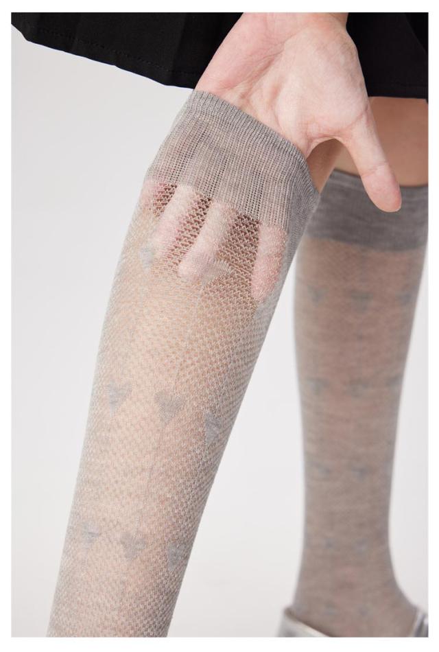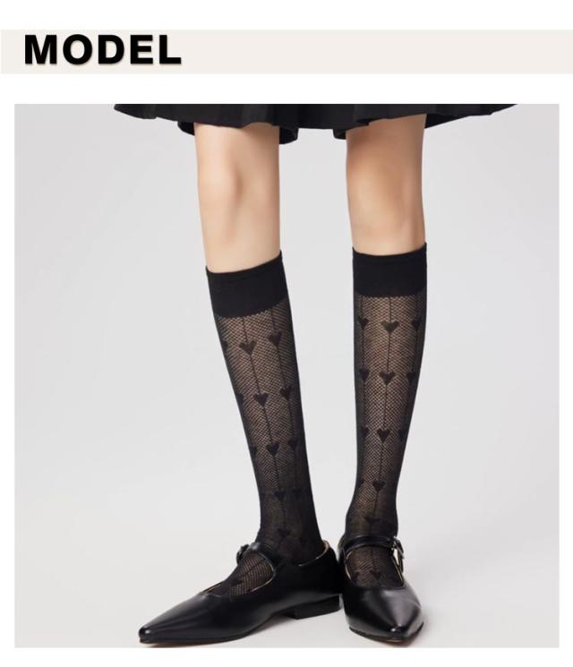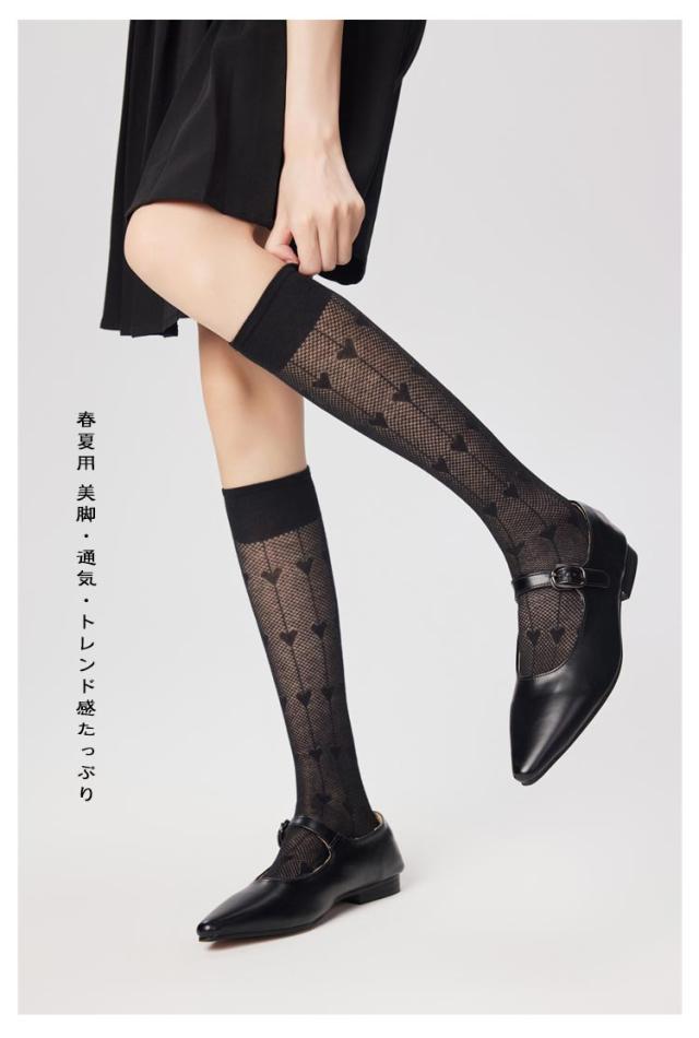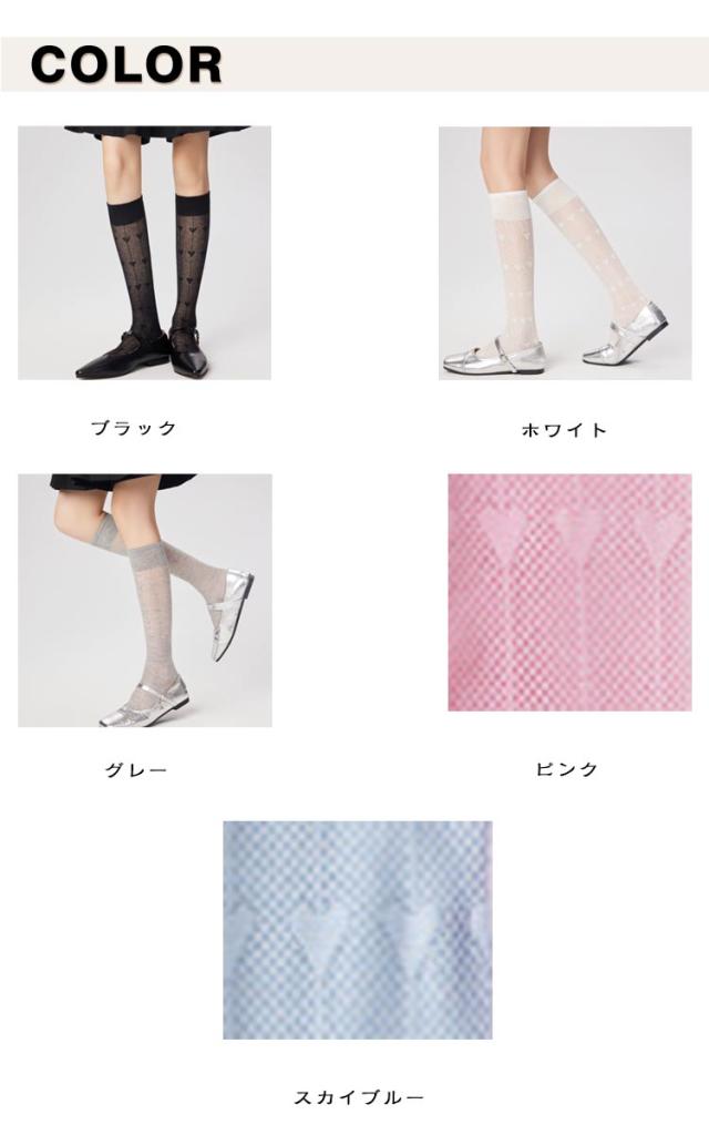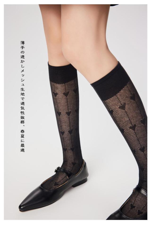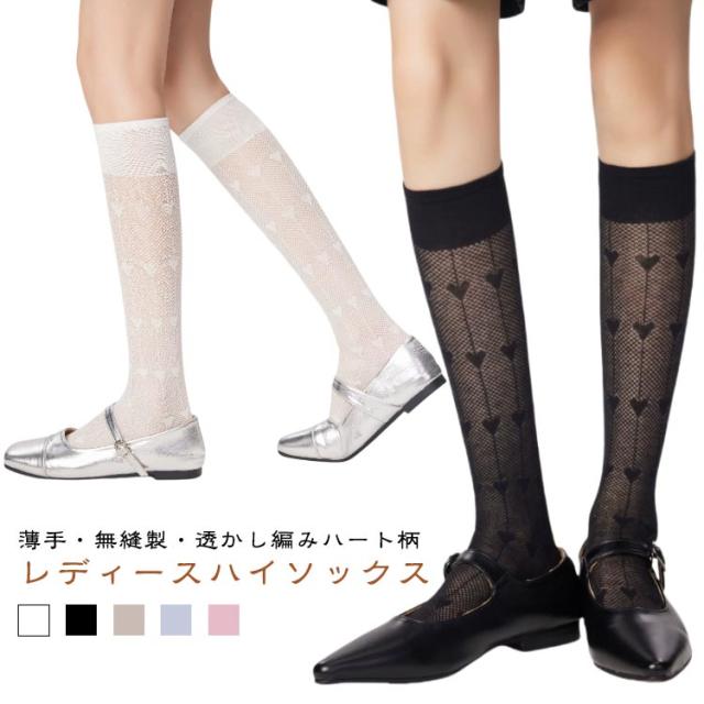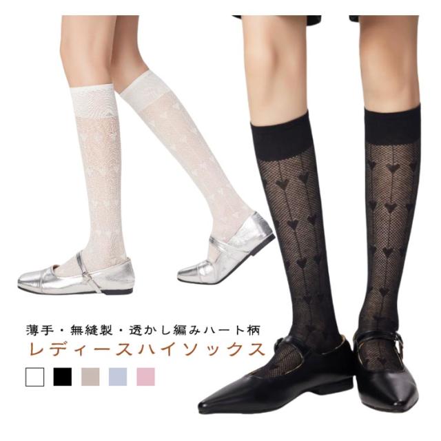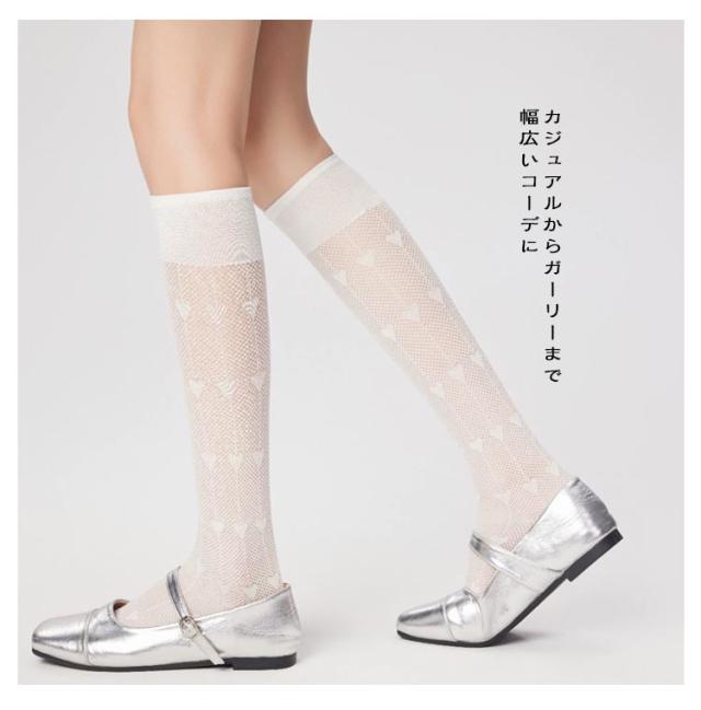 ハイソックス レディース 2足セット メッシュ 透かし編み ハート柄 ソックス くつした 女子 靴下 薄手 美脚 スクールハイソックス 透け感 おしゃれ かわいい ガーリー ロリータ ジュニア 春夏用