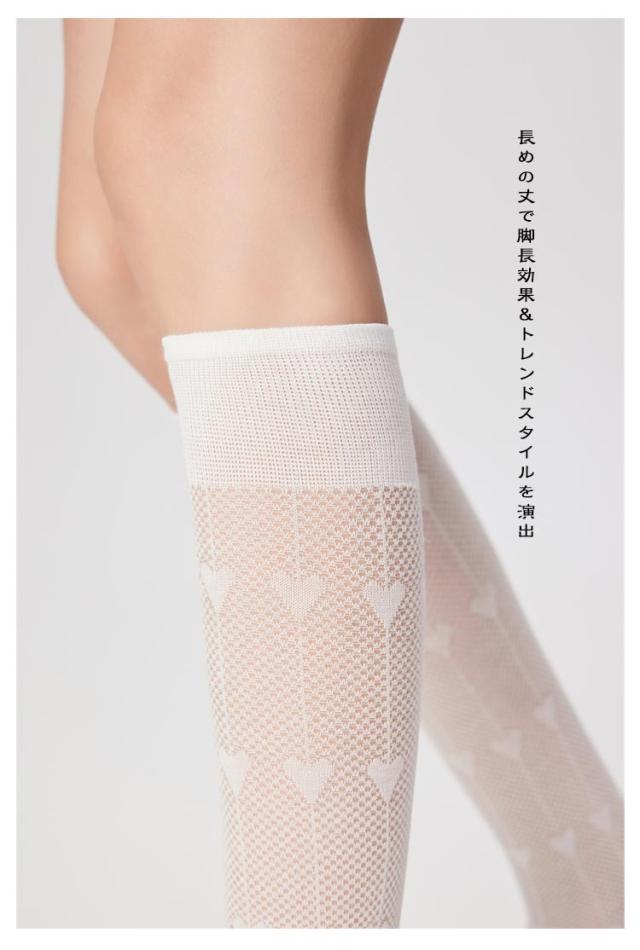 | 薄手・無縫製・透かし編みハート柄 レディースハイソックス 春夏用 美脚・通気・トレンド感たっぷり 薄手の透かしメッシュ生地で通気性抜群、春夏に最適 無骨縫製で履き心地が快適、肌あたりやさしい 微着圧仕様で足元をすっきり見せ、美脚効果あり 長めの丈で脚長効果&トレンドスタイルを演出 カジュアルからガーリーまで幅広いコーデに◎ | |