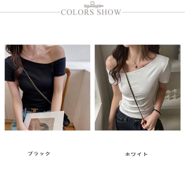 ワンショルダー tシャツ カットソー レディース 夏 半袖 オフショルダー ワンショル トップス プルオーバー 無地 肩見せ 肩出し Tシャツ デコルテ 鎖骨 ストレッチ カジュアル おしゃれ 無地 夏 春 送料無料