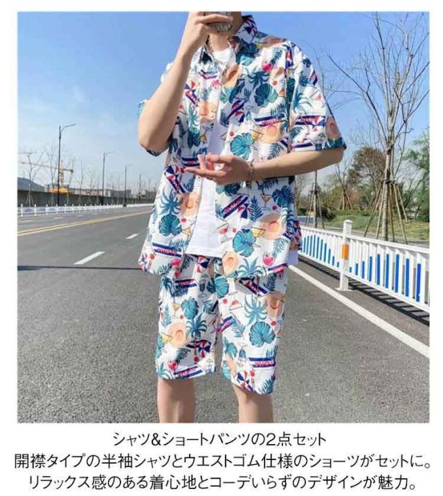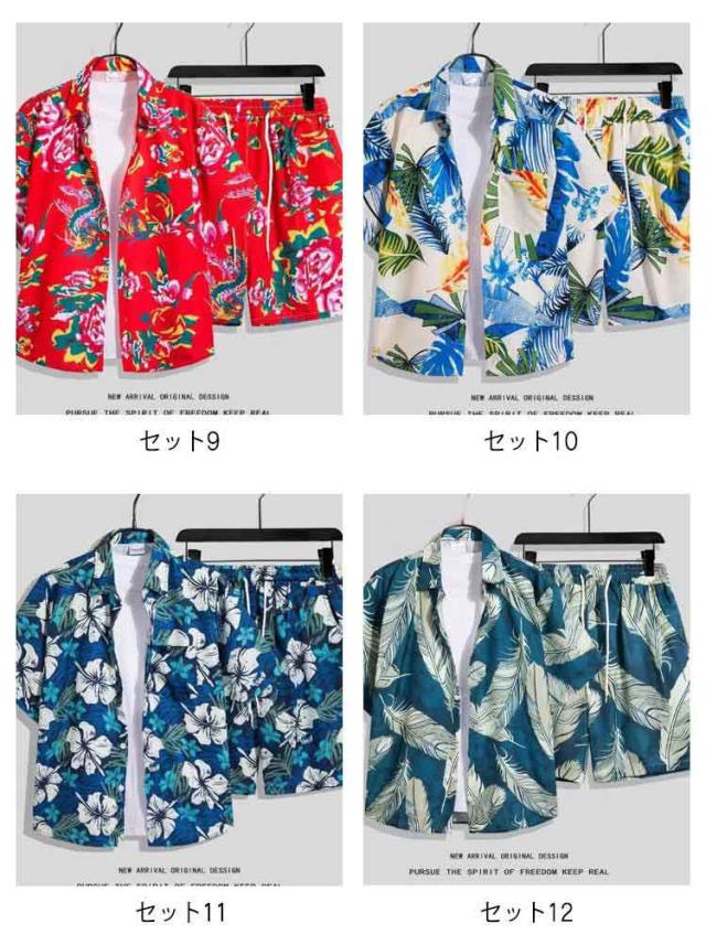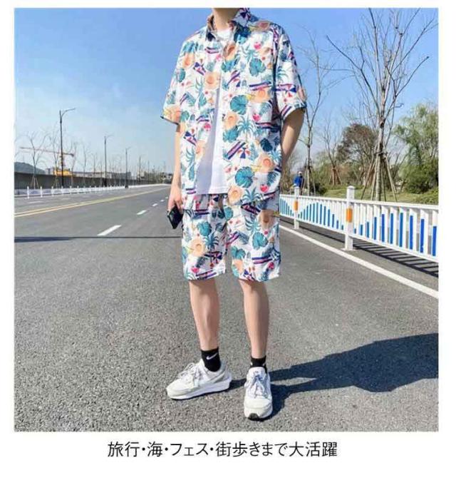 アロハシャツ セットアップ メンズ 夏 リゾート 花柄シャツ ペアコーデ 海 ハワイ旅行 ビーチウェア カップル服 旅行 シャツ 短パン 薄手 涼しい 上下セット 夏コーデ 送料無料