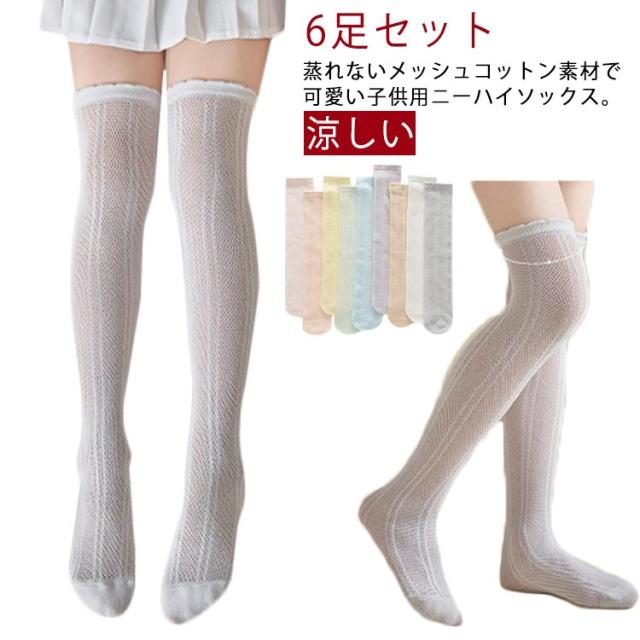 3足組 涼しい ハイソックス キッズ 夏 女の子 ニーハイソックス 薄手 靴下 メッシュハイソックス 膝上ハイソックス おしゃれ ソックス 蒸れない ジュニア 可愛い フリル M L 2歳 蒸れない 4歳 5歳 6歳 7歳 8歳 メッシュハイソックス 10歳 キッズ