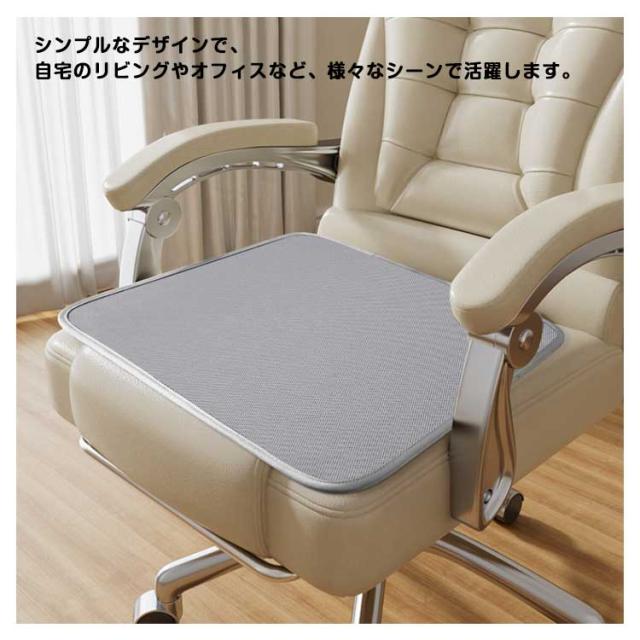 | 蒸れない!接触冷感チェアパッド 超通気メッシュ!表面と中身ともに通気性が高く、お尻に接触した部分の熱を効率に逃がし、長時間の使用や夏場でも蒸れにくく、快適な座り心地です。 シンプルなデザインで、自宅のリビングやオフィスなど、様々なシーンで活躍します。 裏面に滑り止め加工、立ったり座ったりした際のズレ落ち防止。 | |