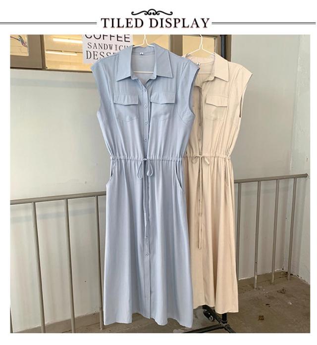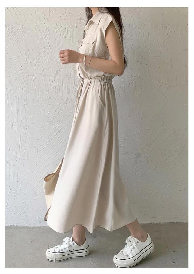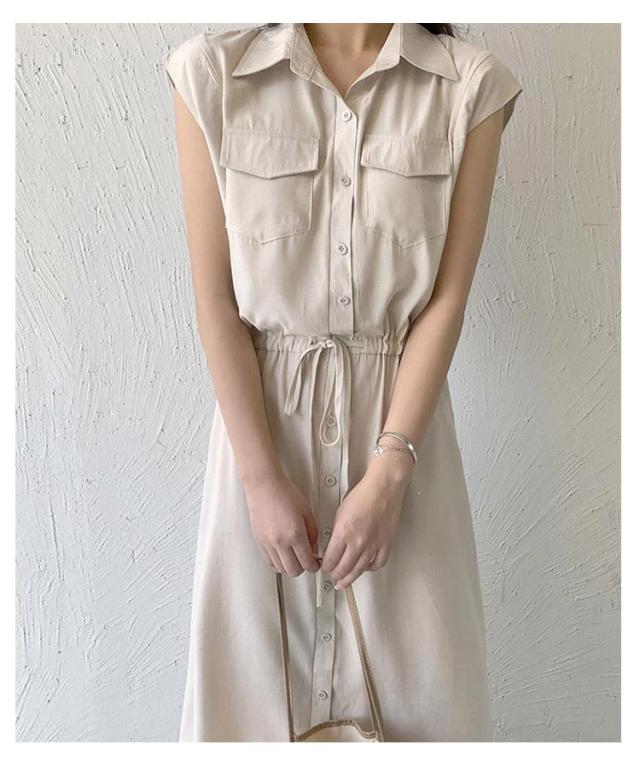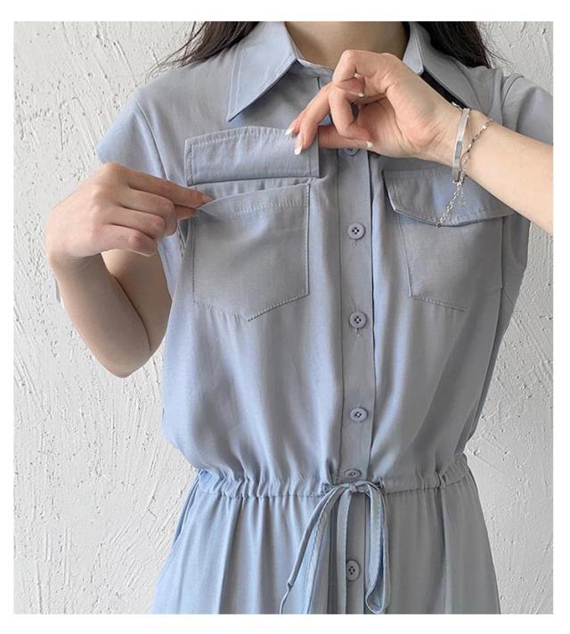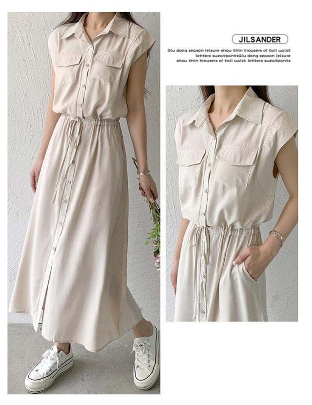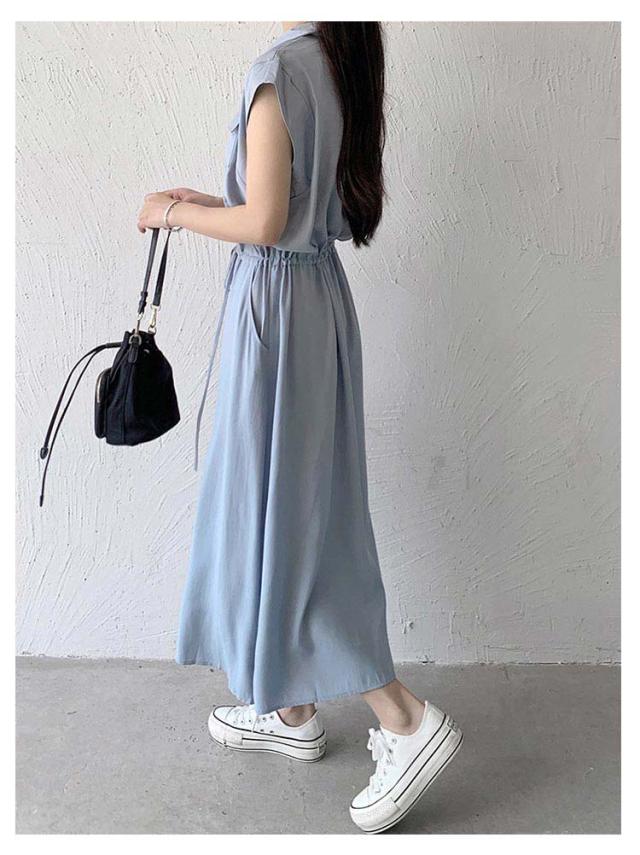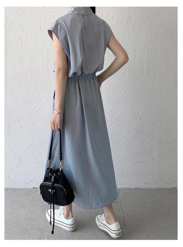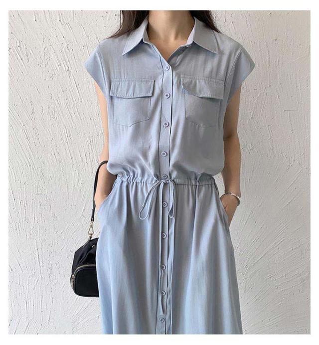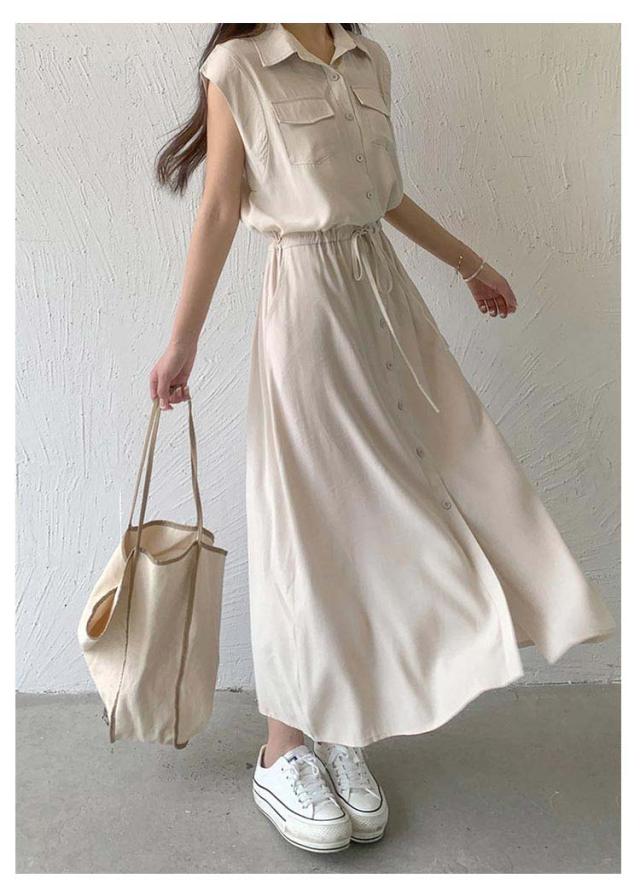 シャツワンピース レディース ロングワンピース ノースリーブ フレンチスリーブ ロングワンピース ロングシャツ シャツ ワンピ ロング マキシ マキシワンピース ボタン 前開 着痩せ フレア 大きいサイズ きれいめ カジュアル
