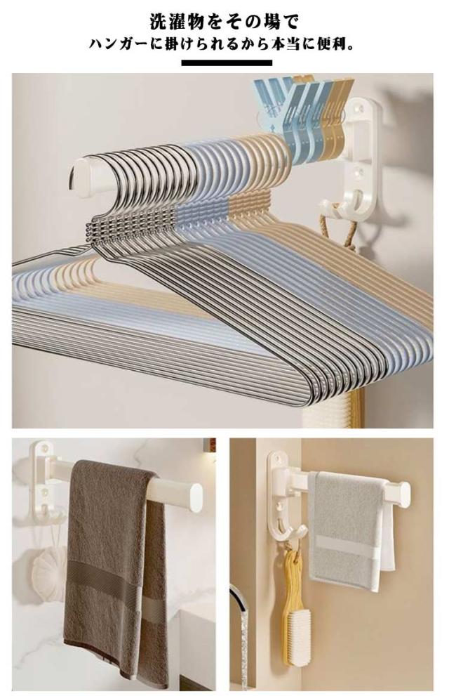ハンガー収納フック 折りたたみ ランドリー収納 壁掛け ラック 洗面所 脱衣所 隙間収納 省スペース 整理整頓 ドア 扉 ドアハンガー ドアフック 部屋干し 引っ掛け収納 カバン バッグ 収納 見せる収納 雑貨 シンプル おしゃれ 送料無料