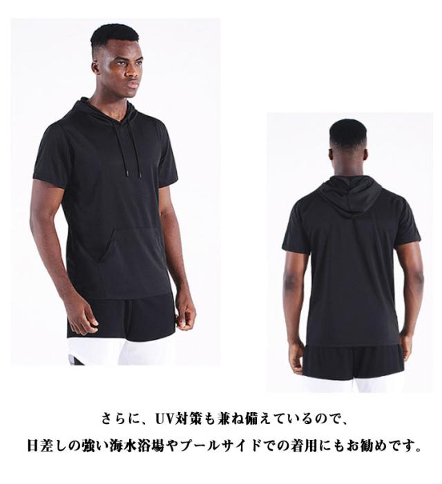 半袖パーカー メンズ レディース 接触冷感 吸水速乾 ドライ フロントポケット UV対策 パーカー 日よけ プルオーバー 運動着 トップス 海水浴場 プール