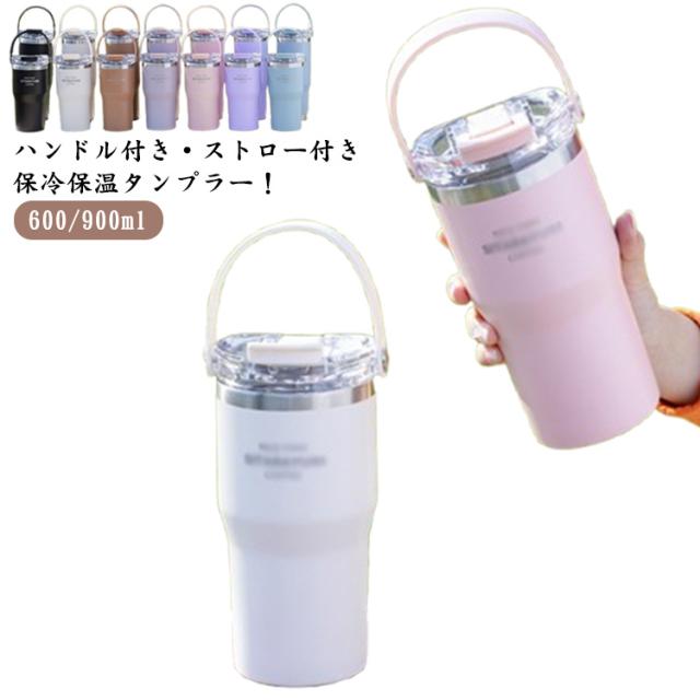タンブラー 持ち運び 水筒 ストロー付きタンブラー 600ml 900ml 大容量 真空断熱 保温 保冷 おしゃれ マグボトル ハンドル付き 蓋付き ステンレスボトル マグ 直飲み こぼれない スポーツ オフィス ジャグ アウトドア 魔法瓶 直飲み 通勤 通学 プレゼント 送料無料