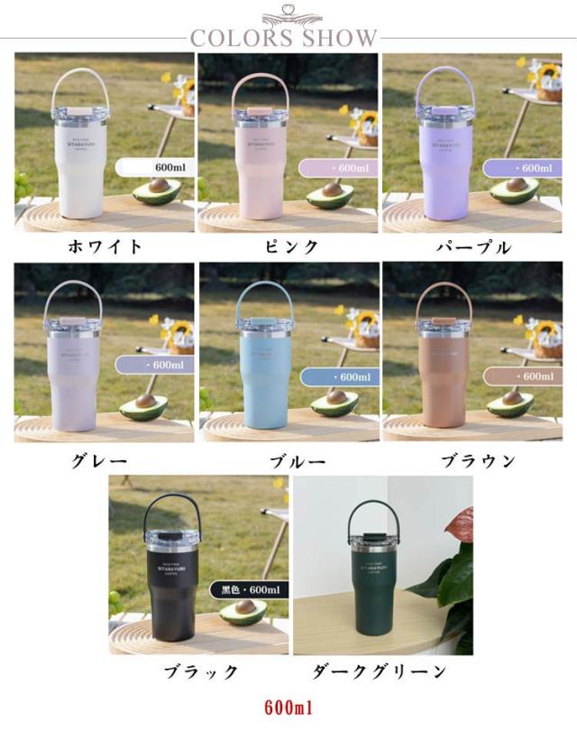 | ハンドル付き・ストロー付き保冷保温タンプラー! 600/900ml 直飲み&ストローの2wayで飲めます。 真空断熱構造により、温かい飲み物は温かいまま、冷たい飲み物は冷たいまま、飲みごろの温度を長時間キープします。 持ち運びに便利なハンドルが付いているので、お家・オフィス・アウトドアなど幅広いシーンで活躍。 シンプルでおしゃれなデザインはプレゼントにもぴったり。 | |