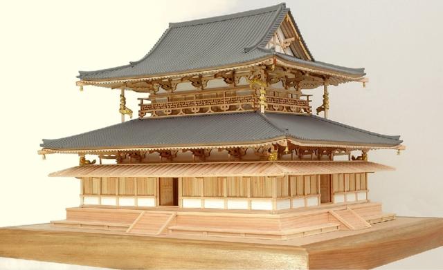 気品と優雅さにあふれる金堂を、木製建築模型で表現。