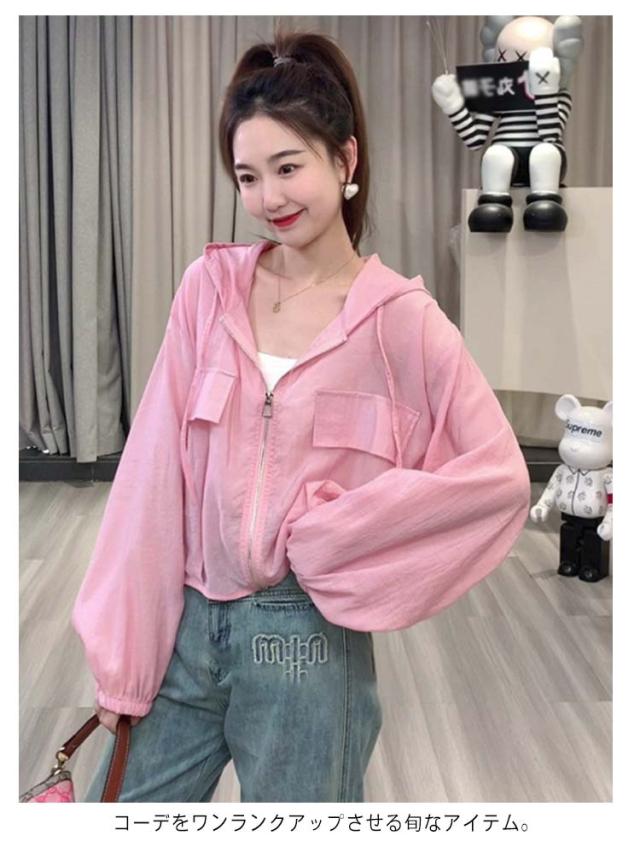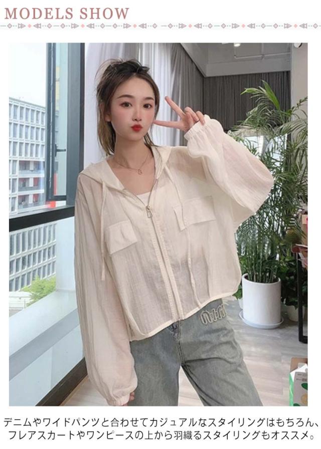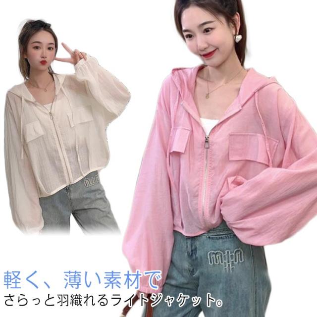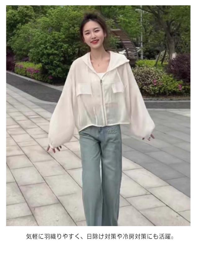 フード付き 涼しい レディース ショート丈 uvカット カーディガン 夏 アウター 羽織り 可愛 ライトアウター 長袖パーカー 薄手 ジャケット パーカー 紫外線対策 トップス 長袖 uvカット 無地 冷房対応 通気性 UV対策 日焼け止め M L XL