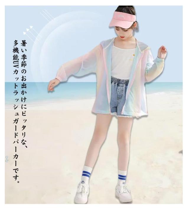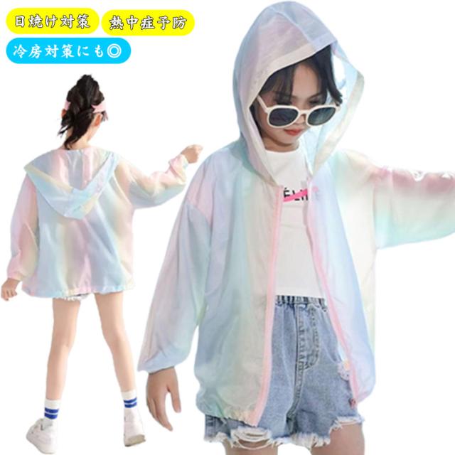 パーカー キッズ 子供服 軽い 女の子 羽織り 長袖 ジップ付き カーディガン 日除け ラッシュガード 夏 冷房対策 薄手 UVカット 通気性 プール 涼しい 夏服 海 UVカット アウトドア 熱中症対策 キッズ 防風 トップス
