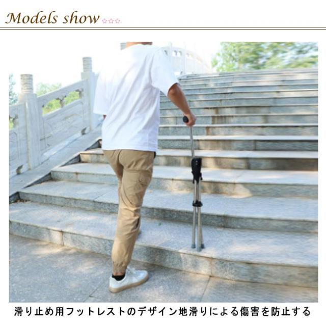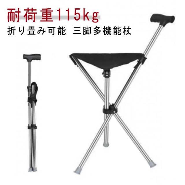| 折り畳み可能 三脚多機能杖 耐荷重115kg ワンタッチで杖からイスに早変わり! 折りたたみ式の広い座面で安定した座り心地 滑り止め用フットレストのデザイン地滑りによる傷害を防止する | |