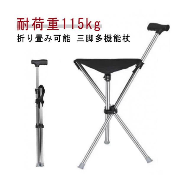 折りたたみ 杖 3本脚 折り畳み杖 三脚 スポーツ観戦 チェアー 椅子 座れる杖 イス 耐荷重115kg 軽量 折りたたみ ステッキ 介護 歩行補助杖 女性 座れるステッキ 歩行補助杖 ステッキチェア コンパクト 軽量 旅行 腰痛 ゴルフ アウトドア 釣り 休憩