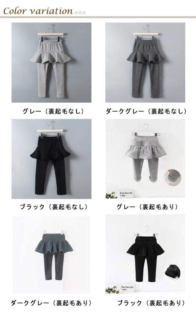 | レギンス付きスカート 80-140cm 伸縮性抜群のレギンスでどんなに動いてもOK。 手触りが良く、赤ちゃんの肌にも優しい肌触りです。 2タイプあり。オールシーズンに適用。 | |