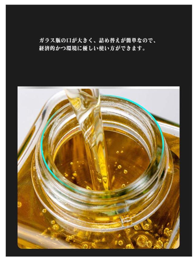 | 液だれしない、傾けるだけで注げる液体調味料ボトル4本セットです。 各調味料ボトルの容量は500mlあり、1本で大量の調味料をまとめて入れることができます。 ガラス瓶の口が大きく、詰め替えが簡単なので、経済的かつ環境に優しい使い方ができます。 オシャレなデザインで、キッチンに置いておくだけでもインテリアになるアイテムです。 傾けることで自動的にフタが開閉し、片手でも簡単に注ぐことができる便利な調味料容器です。 | |
