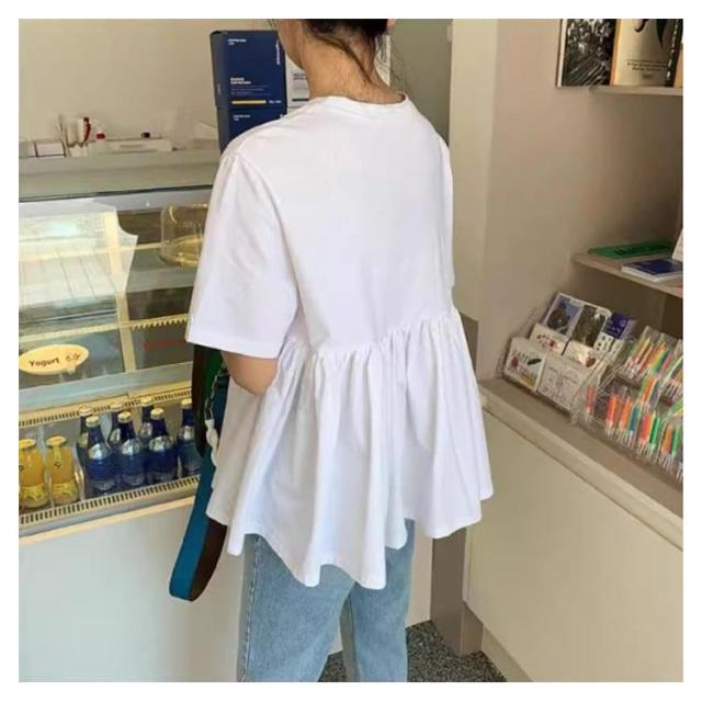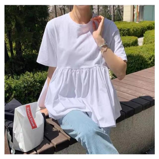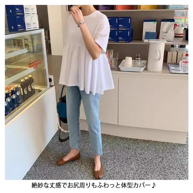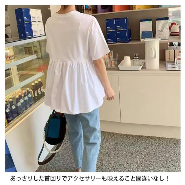 トップス ペプラムトップス バックフリルカットソー ホワイト ペプラム カットソー フリル バックフリル Tシャツ ブラウス ギャザー 後ろ 半袖 無地 半袖Tシャツ ラウンドネック トップス レディース