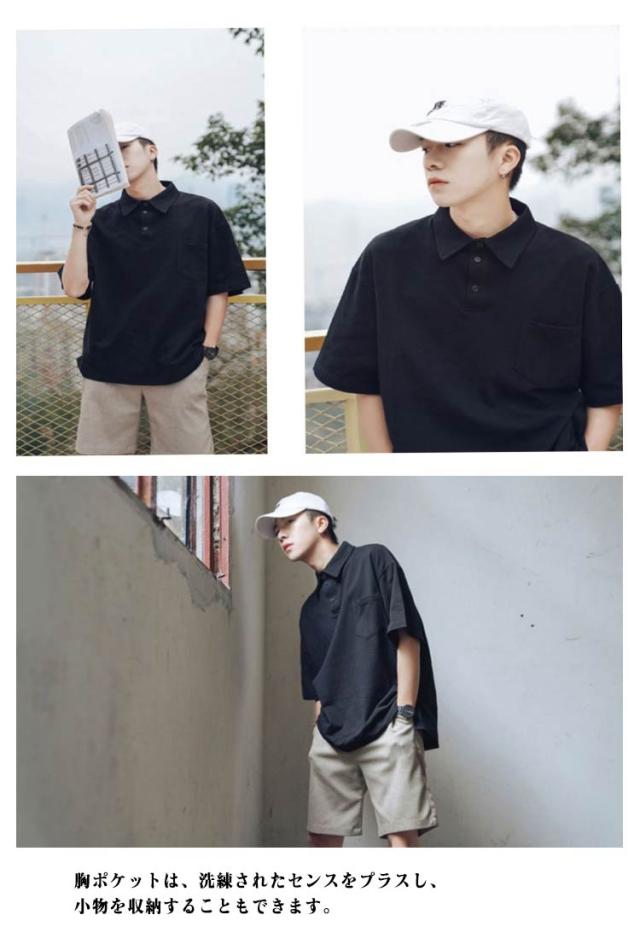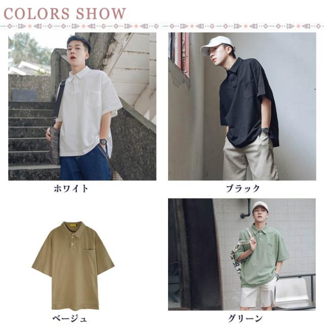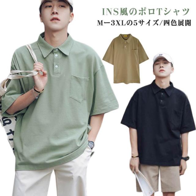 おしゃれ メンズ ポロシャツ poloシャツ Tシャツ 襟付き 半袖 無地 tシャツ カッコイイ ゆったり トップス カットソー 夏 INS風 トレンド メンズファッション 韓国 ファッション Tシャツ ホワイト ブラック カーキ グリーン