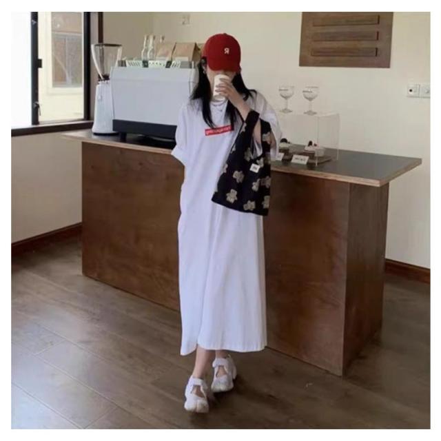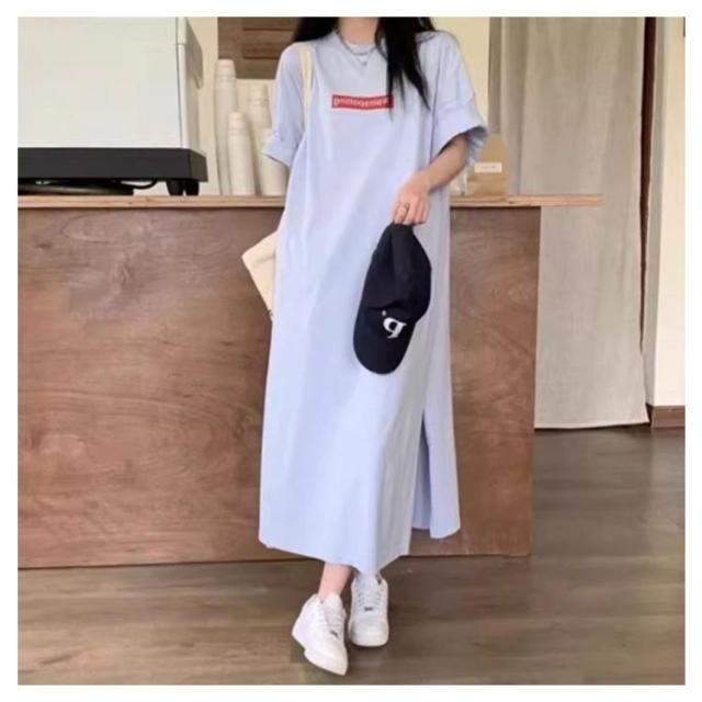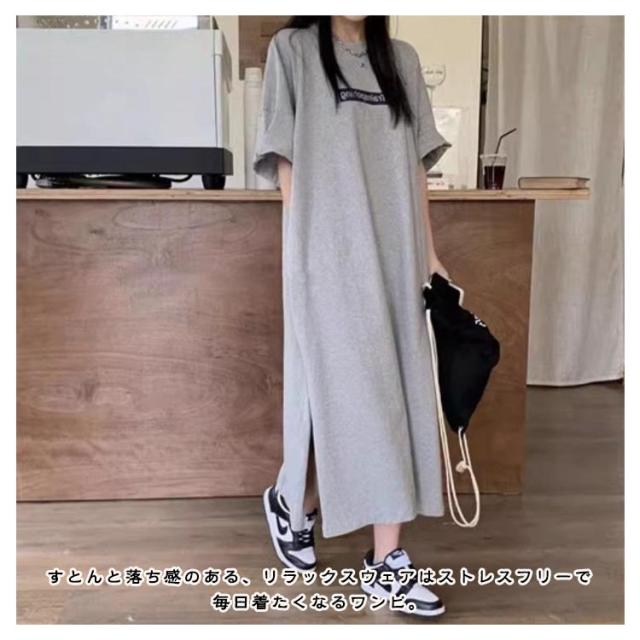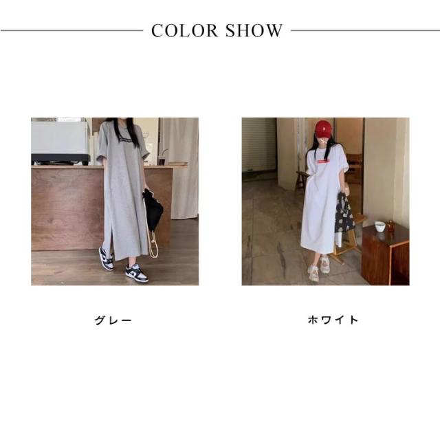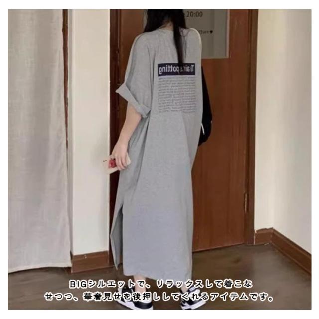 tシャツワンピース 半袖 ロングtシャツ プルオーバー 半袖tシャツ ワンピース マキシ ロングtシャツ ロゴ スウェット ロングワンピース カットソー スリット Tシャツ ロング マキシ丈 マキシワンピ 大きめ BIG ゆったり