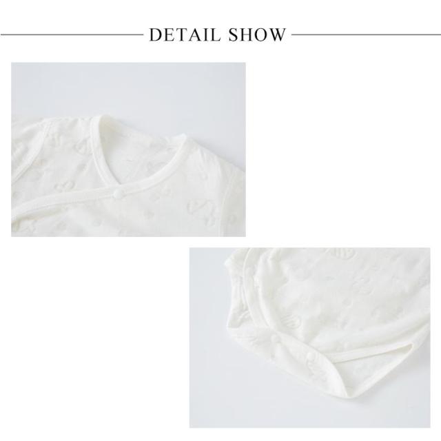| 夏に涼しいベビーロンパース かわいい柄、お腹が出ないロンパース、薄手のデザイン、春夏は快適です。 紐+スナップボタンの全開タイプ、寝かせたままのお着替えもラクチン♪肌着としてはもちろん、お部屋着としても大活躍の人気アイテムです。 肌に優しい上質な綿コットン生地、蛍光剤を一切使用してないので、新生児でも安心してお使いいただけます。 | |
