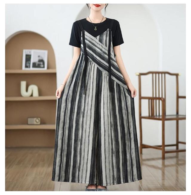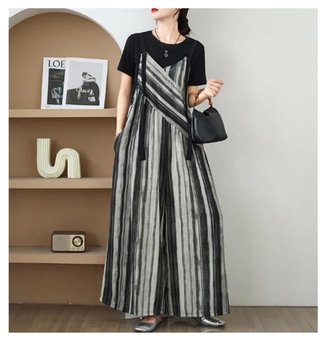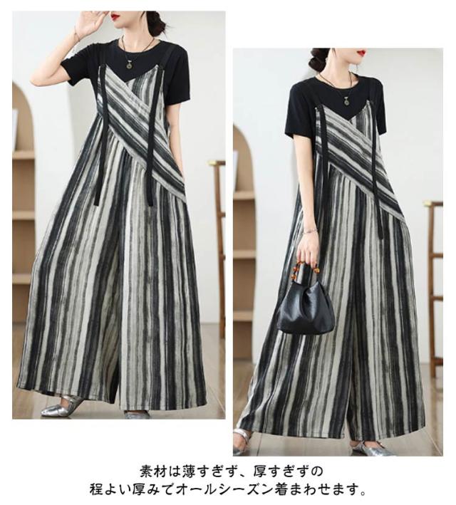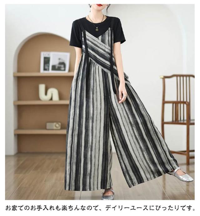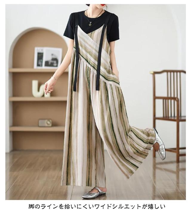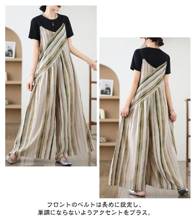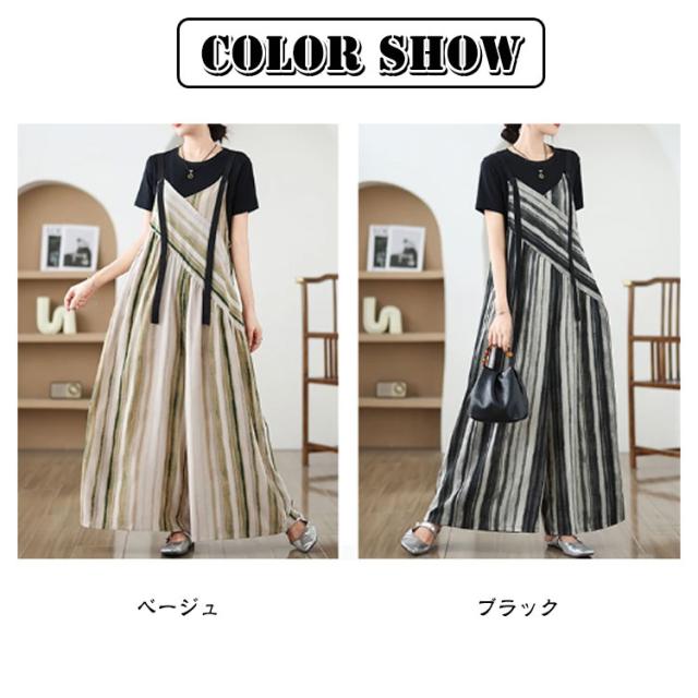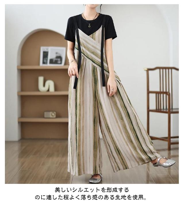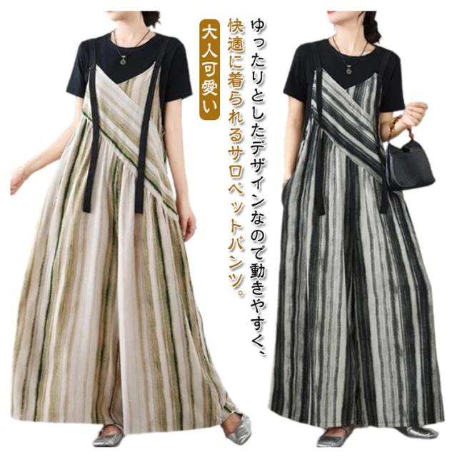 パンツ オーバーオール サロペット ストライプ柄 サロペットパンツ オールインワン オールインワン ゆったり ワイドパンツ かわいい キャミサロペット Vネック きれいめ 美脚 レディース 春 夏 秋 通勤 通学 体型カバー 着痩せ