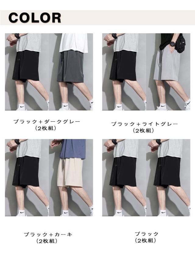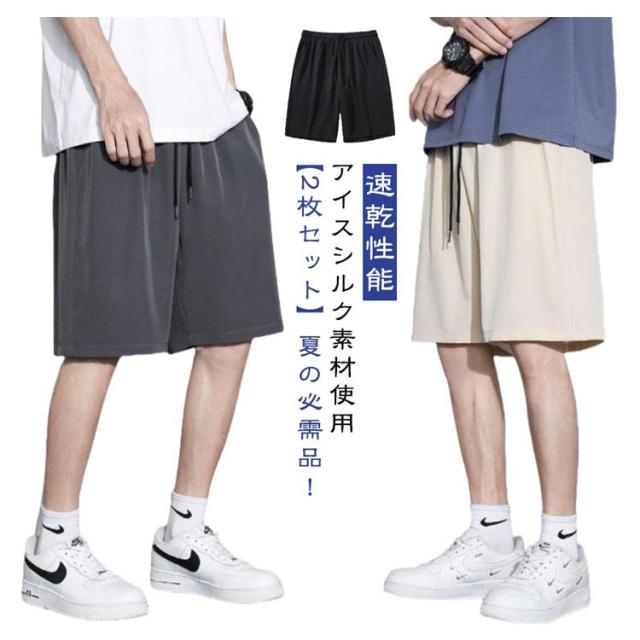メンズ 【2枚セット】ショートパンツ 接触冷感 ハーフパンツ アイスシルクパンツ 短パン 吸汗速乾 ウエストゴム ポケット付き 通気性 ボトムス 部屋着 シンプル 【2枚セット】ショートパンツ ゆったり 大きいサイズ