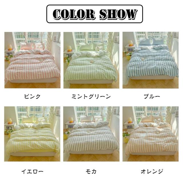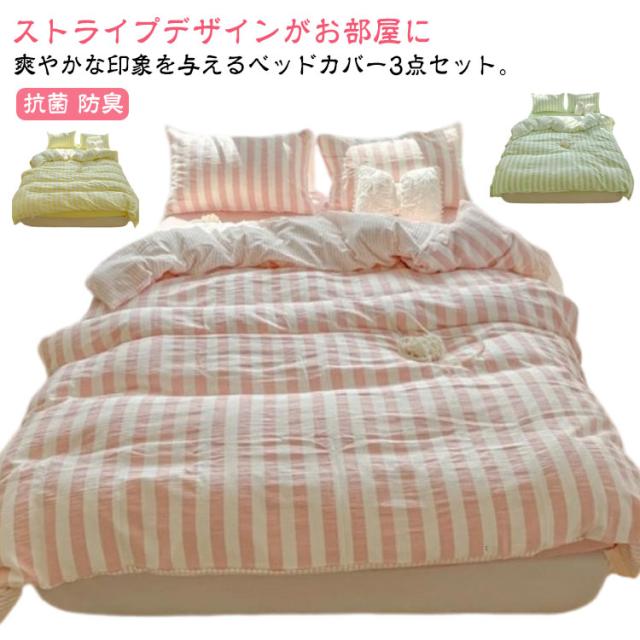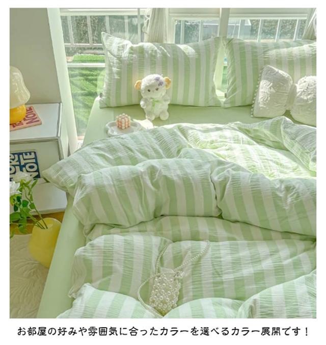 布団カバーセット 韓国 掛け布団カバー フラットシーツ シングル ストライプ 布団カバーセット 枕カバー かわいい 3点セット シアサッカー生地 丸洗い 防ダニ 抗菌 防臭 洋式 清潔 北欧 おしゃれ オールシーズン 学生 寝室