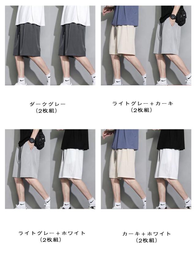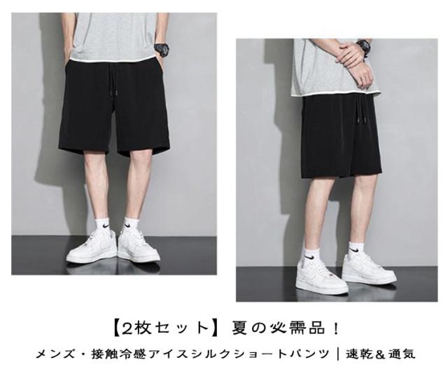 【2枚セット】ショートパンツ メンズ アイスシルクパンツ 吸汗速乾 ポケット付き 通気性 ウエストゴム 接触冷感 ボトムス 短パン 部屋着 ハーフパンツ シンプル 無地 ゆったり 大きいサイズ