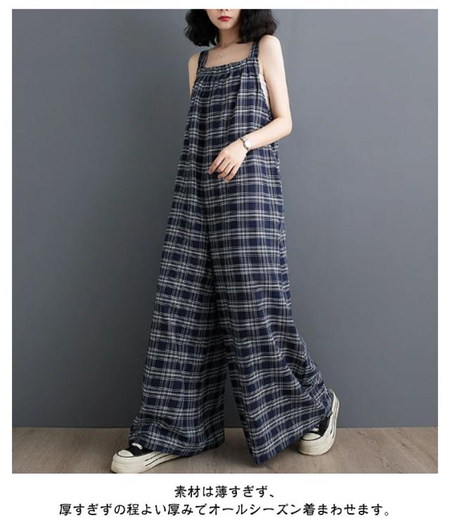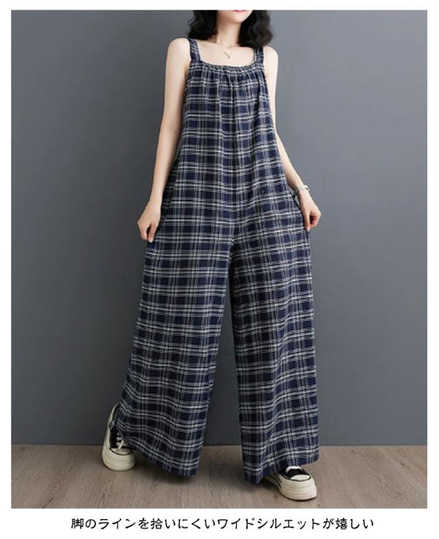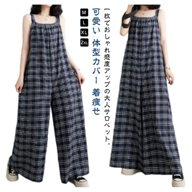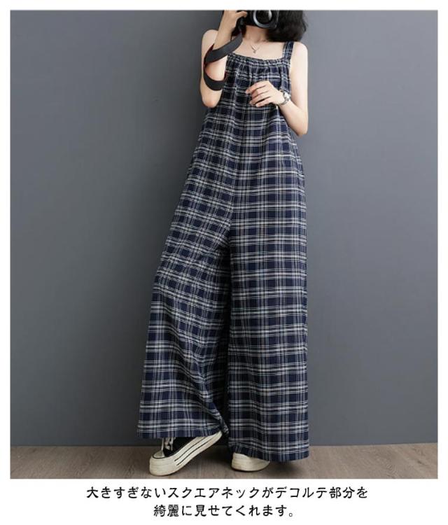 レディース サロペット サロペットパンツ オールインワン ロング丈 サロペット ワイドパンツ キャミサロペット ゆったり チェック柄 秋 スクエアネック オーバーオール 美脚 春 夏 かわいい 通勤 通学 体型カバー 着痩せ 大人