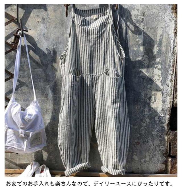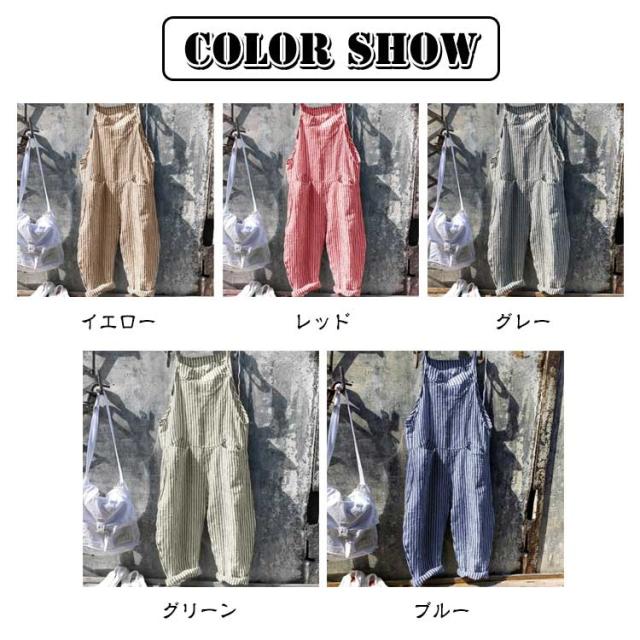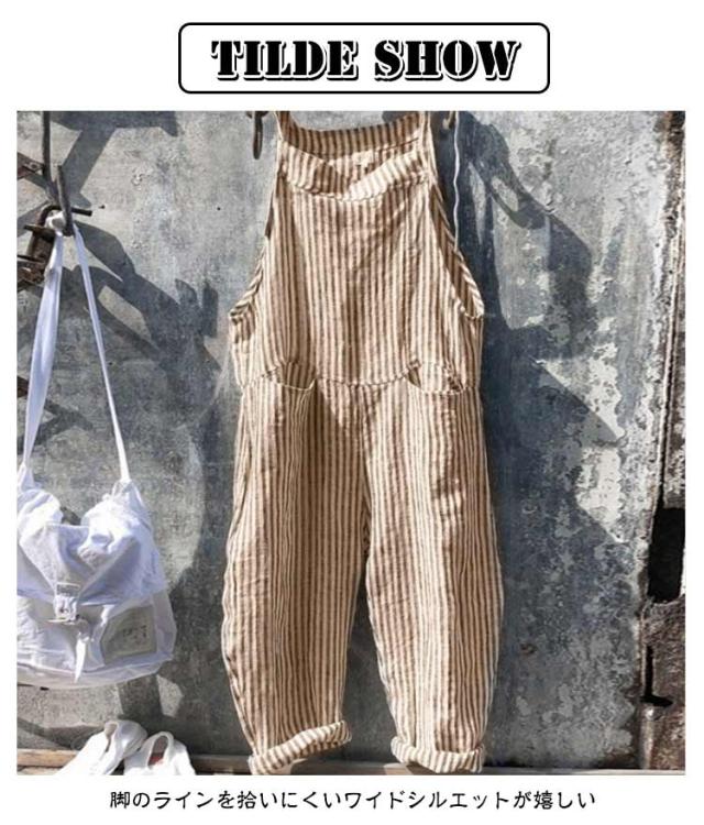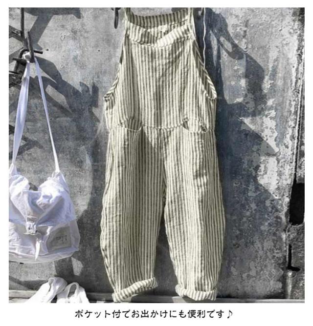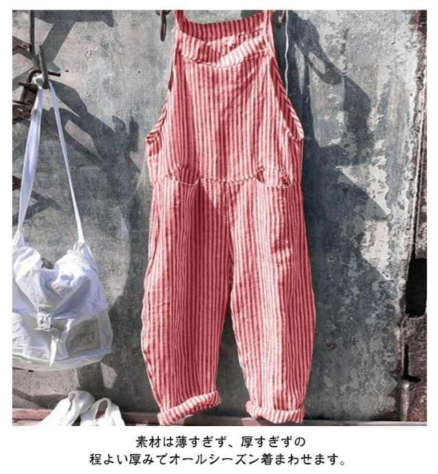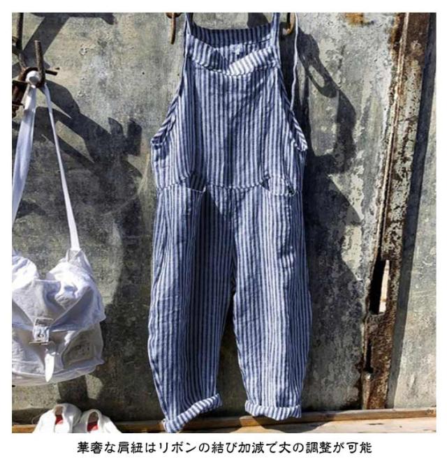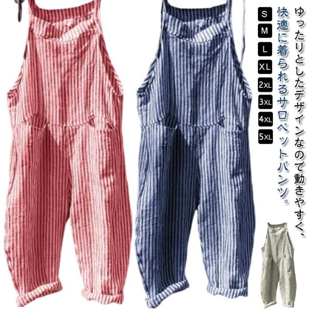 サロペット サロペット オールインワン オーバーオール ロング丈 美脚 ワイドパンツ レディース パンツ ゆったり ポケット付き かわいい 九分丈 対応 春 夏 秋 通勤 ストライプ柄 体型カバー 可愛い キャミサロペット 大きいサイズ