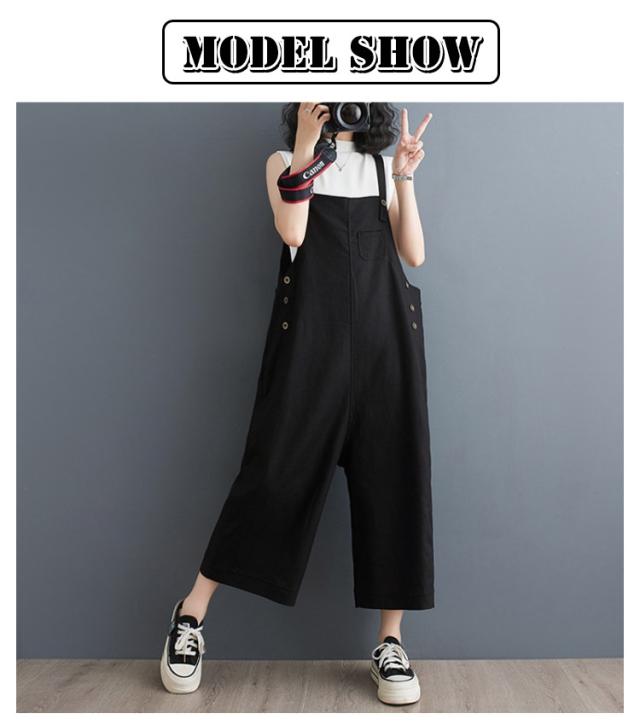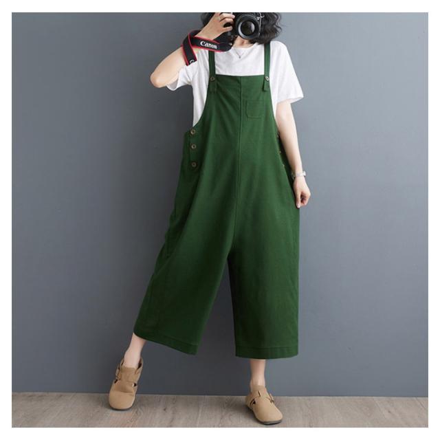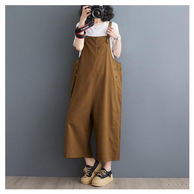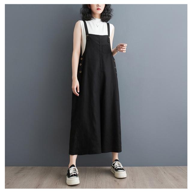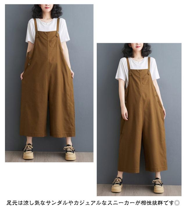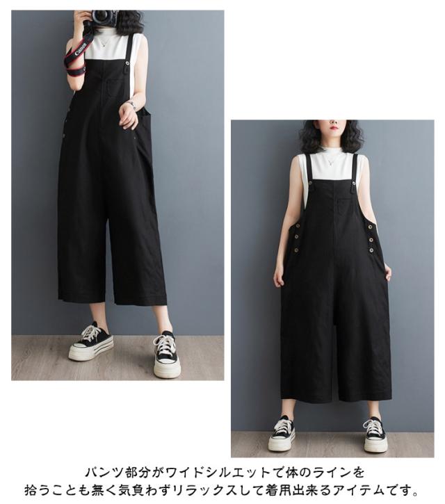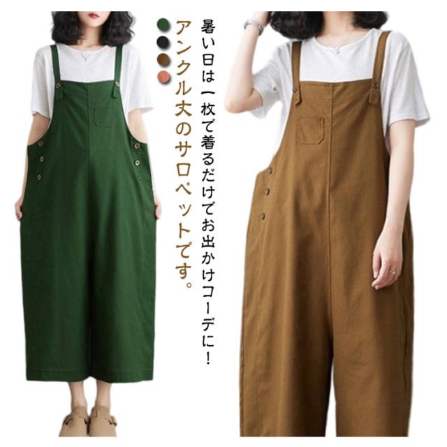 オールインワン レディース スクエアネック キャミサロペット オーバーオール サロペットパンツ ワイドパンツ くるぶし丈 アンクル丈 ゆったり パンツ サイドボタン かわいい サロペット 美脚 春 夏 秋 通勤 通学 体型カバー