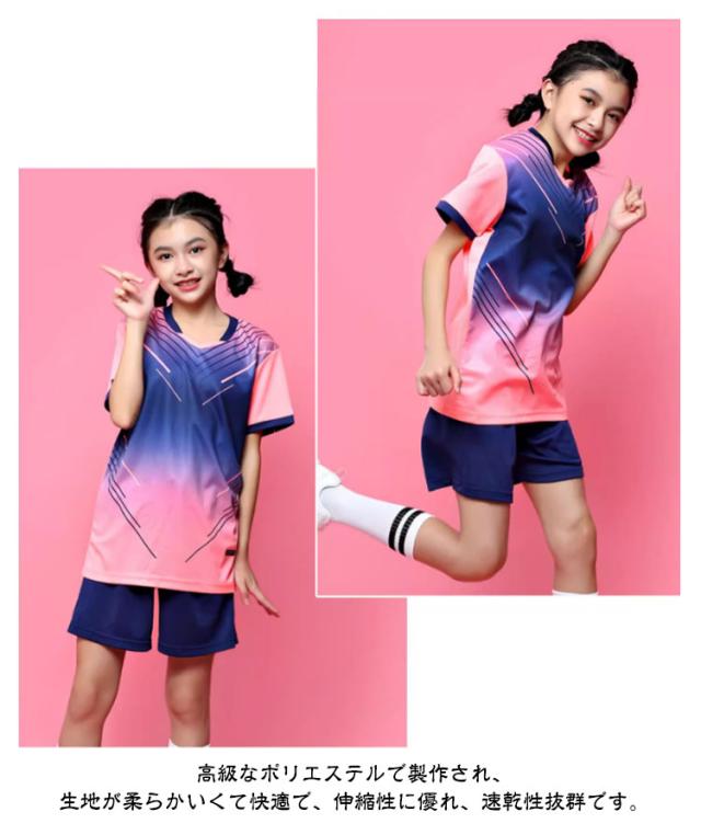 ユニフォーム パンツ 卓球 上下セット トップス テニスウェア 子供 吸汗速乾 ジュニア シャツ 半袖 練習着 Tシャツ ショートパンツ セットアップ クラブチーム 通気性 卓球 ストレッチ ゲームウェア 卓球 バドミントンウェア 部活 キッズ 女の子 男の子