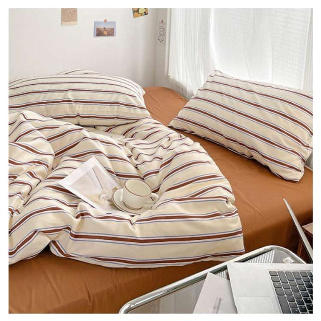 フラットシーツ かわいい 3点セット ストライプ 韓国 シーツセット 北欧 布団カバーセット 布団カバーセット 綿100% シングル 寝具 枕カバー 丸洗い 防ダニ 抗菌 防臭 洋式 掛け布団カバー おしゃれ オールシーズン