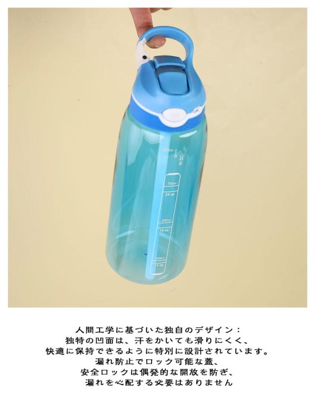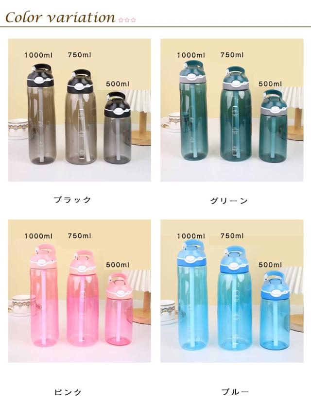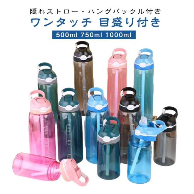 750ml 水筒 1リットル クリア 直飲み スポーツ水筒 ストロー 1000ml ウォーターボトル ハングバックル付き 500ml 持ち運び便利 ジム 大容量 スポーツ用 水分補給 飲みやすい ウォーター ボトル 洗いやすい 1L 運動水筒 登山