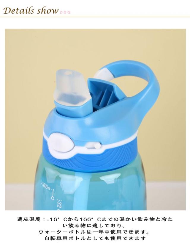 | 500ml 750ml 1000ml 隠れストロー・ハングバックル付き ワンタッチ 目盛り付き ウォーターボトル 健康的な無毒の材料:安全なPCは、健康に優れ、耐久性に優れています。しっかりと閉じるために使用されるシリコン接続リング 人間工学に基づいた独自のデザイン:独特の凹面は、汗をかいても滑りにくく、快適に保持できるように特別に設計されています。漏れ防止でロック可能な蓋、安全ロックは偶発的な開放を防ぎ、漏れを心配する必要はありません 目盛り付き:容量がわかる目盛り日常で必要な水分補給をサポート 適応温度:-10°Cから100°Cまでの温かい飲み物と冷たい飲み物に適しており、ウォーターボトルは一年中使用できます。自転車用ボトルとしても使用できます 安全な使用:熱気圧によって蓋が開かれ、お湯が瞬間的に噴出して火傷するのを避けるために、お湯を入れた後すぐに蓋をしないで、数分後に蓋をしてください。高温でボトルが変形するため、沸騰した水の中で煮るのはよくありません。 幅広い用途:サイクリング/登山/旅行/ランニング/ヨガなどのアウトドアスポーツに適しています。 家庭/オフィス/フィットネスなどの日常生活もあります | |