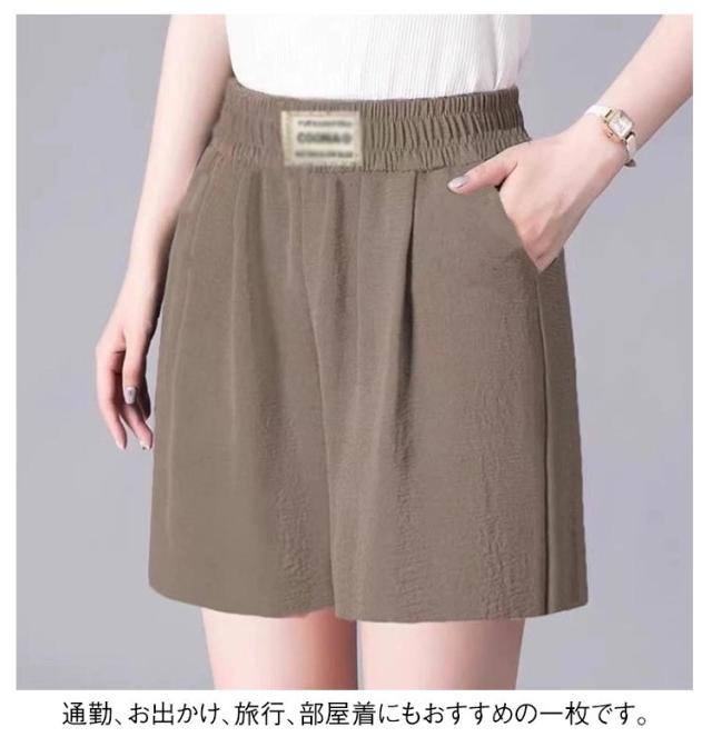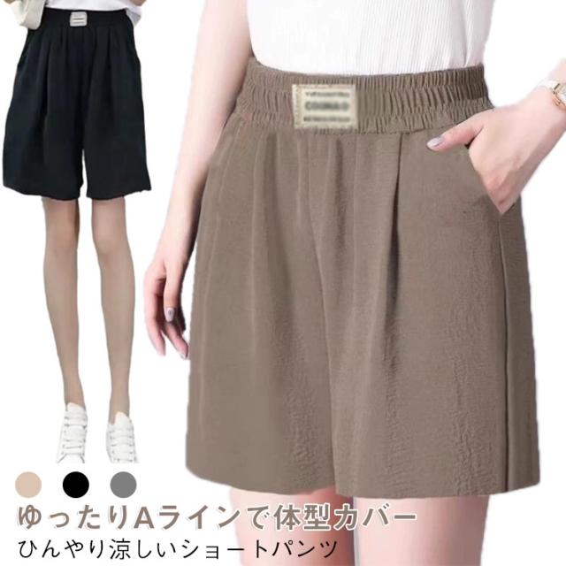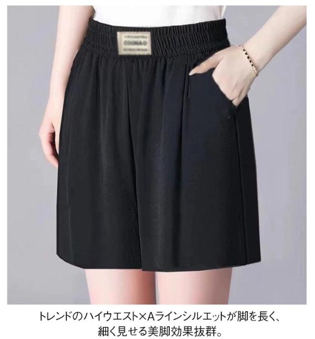 【2本セット】ショートパンツ 送料無料 レディース 涼感 【2本セット】ショートパンツ ハイウエスト 五分丈 ゆったり 美脚 ワイドパンツ 膝上丈 Aライン 夏用 ボトムス