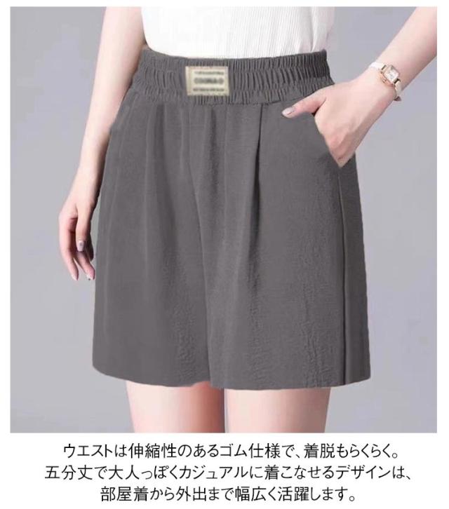 | ひんやり涼感の素材を使用したレディースショートパンツが登場。 さらっと快適な肌触りで、暑い日も快適に過ごせます。 トレンドのハイウエスト×Aラインシルエットが脚を長く、細く見せる美脚効果抜群。 ウエストは伸縮性のあるゴム仕様で、着脱もらくらく。 五分丈で大人っぽくカジュアルに着こなせるデザインは、部屋着から外出まで幅広く活躍します。 通勤、お出かけ、旅行、部屋着にもおすすめの一枚です。 | |