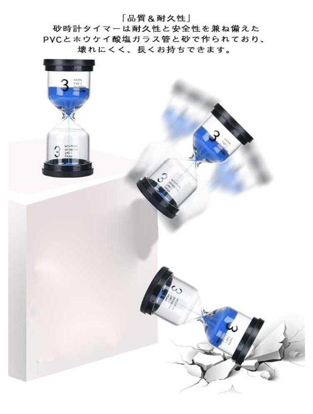 | 1分 3分 5分 10分 15分 20分 30分 45分 60分 カラフルな砂時計 7色 ●「品質&耐久性」砂時計タイマーは耐久性と安全性を兼ね備えたPVCとホウケイ酸塩ガラス管と砂で作られており、壊れにくく、長くお持ちできます。 ●「カウント時間」それぞれの砂時計の時間は違うです。1 分、3 分、5 分、10 分、15 分、20 分、30 分、45 分、60 分各 10 % で一度に偏差可能です。 ●「クリアなデザイン」すべて砂タイマーの色は違う時間を代表します。 ●「時間の流れを生き生きと解釈した」砂時計の砂も派手で明るすぎない とてもいい色で可愛かったです,砂時計を置くと、砂がゆっくりと流れ始めます。砂時計をシームレスにつなぎ、時間の流れを生き生きとイメージし、生命の美しさを持っています。 ●「適用広い」キッチン、授業、ゲーム、鍛錬の時、砂タイマーを適用できます。さらに、精緻な外観は、家に置いて、装飾もとても似合います。プレゼントとして、子供や友達に贈りしてお勧めます。 | |