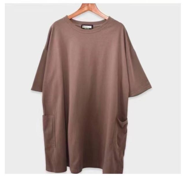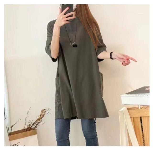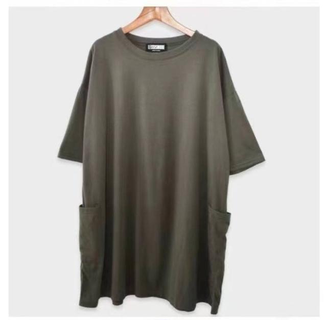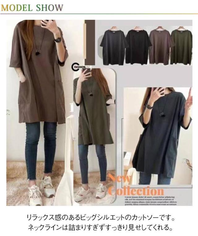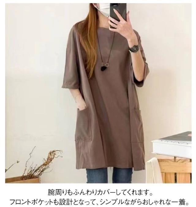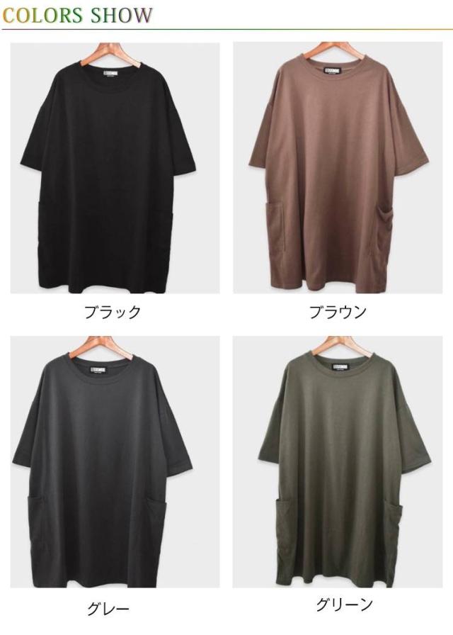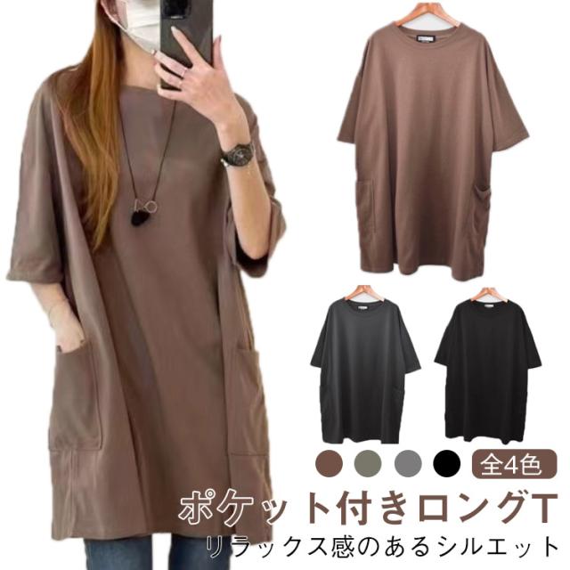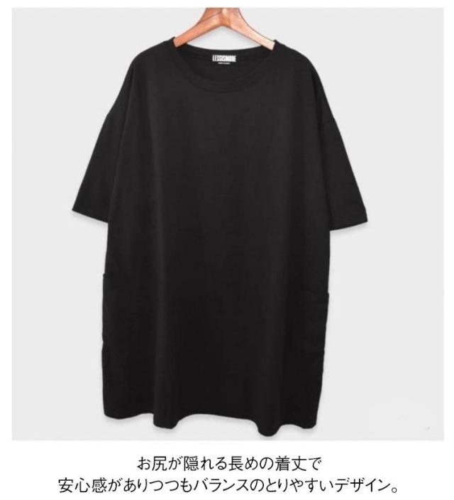 ロング 送料無料 ロンT 長め ポケット付き Tシャツ カットソー チュニック ビッグ 大きいサイズ 半袖 ゆったり 体型カバー ロンT 春夏