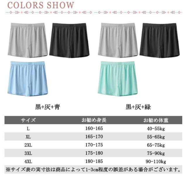 | 3枚セット!通気性抜群の素材で快適な履き心地のメンズトランクス! 柔らかく、ゆったりとした履き心地と、なめらかな肌触りで快適な着心地です 少し薄めの生地で抜群の通気性があり、暑い夏場に快適です。 アイスシルク素材で、吸汗速乾性に優れドライタッチ、清涼感のある肌触り。 トランクス派の方はもちろん、ボクサーパンツのしめつけが苦手の方に是非おすすめ。 | |